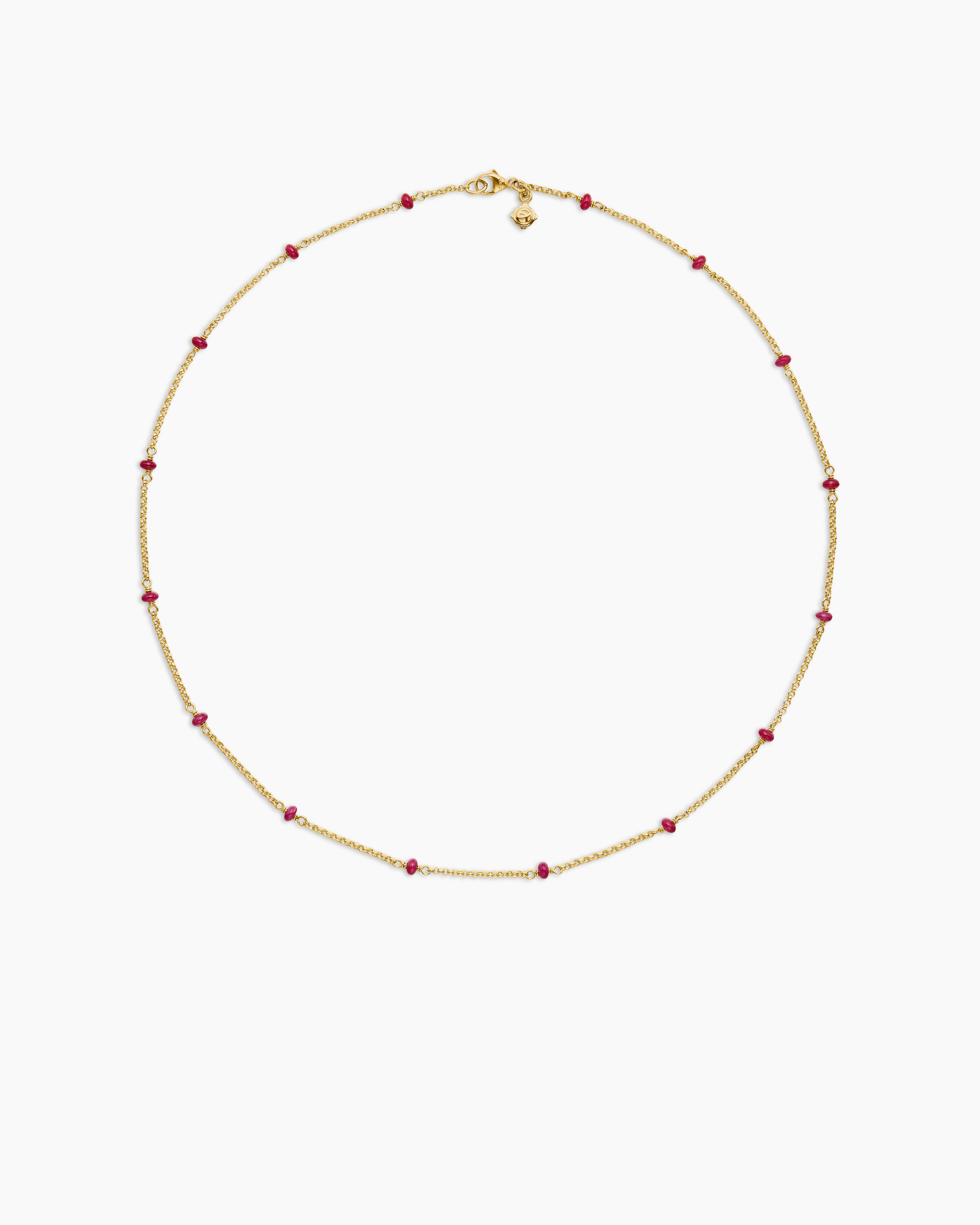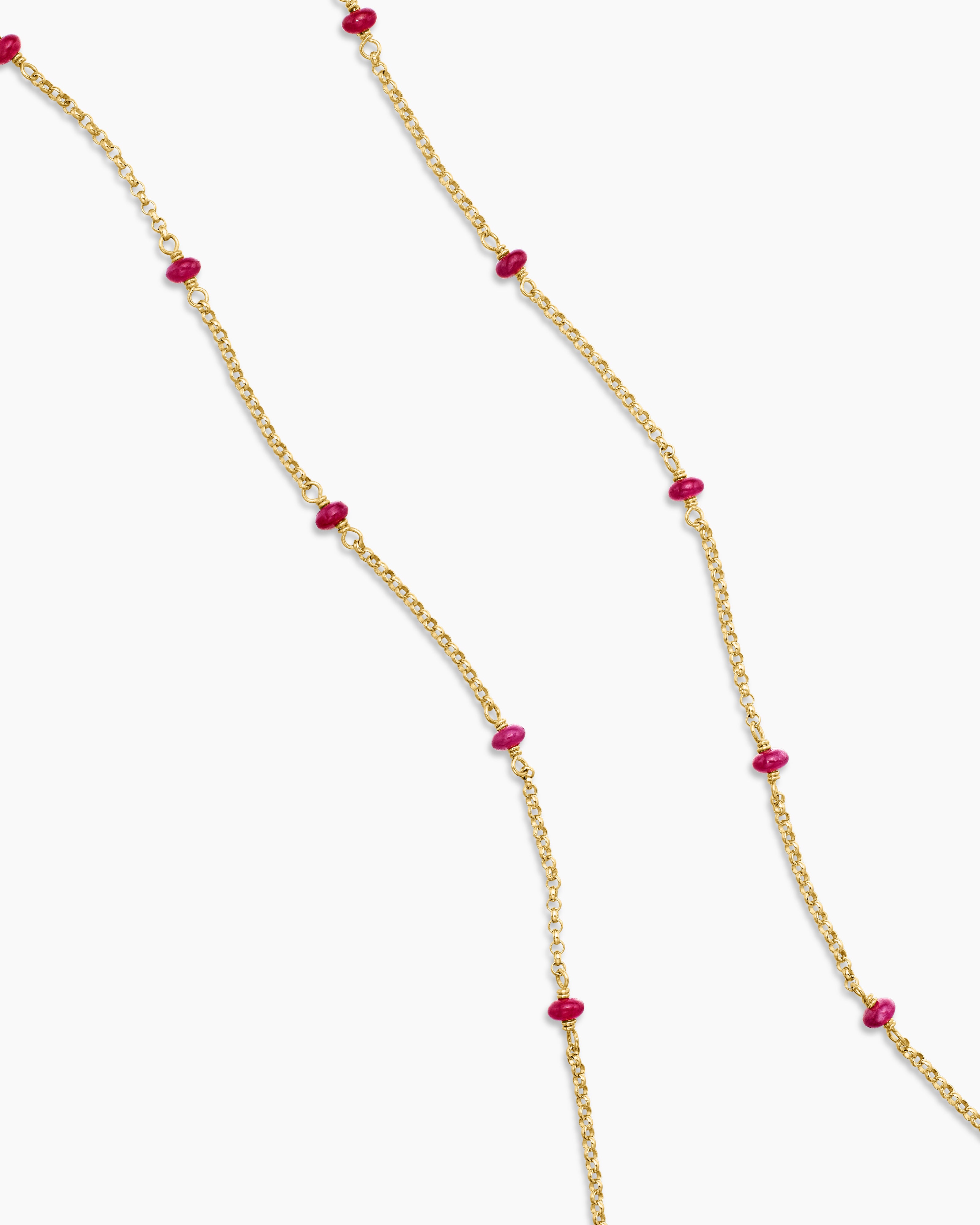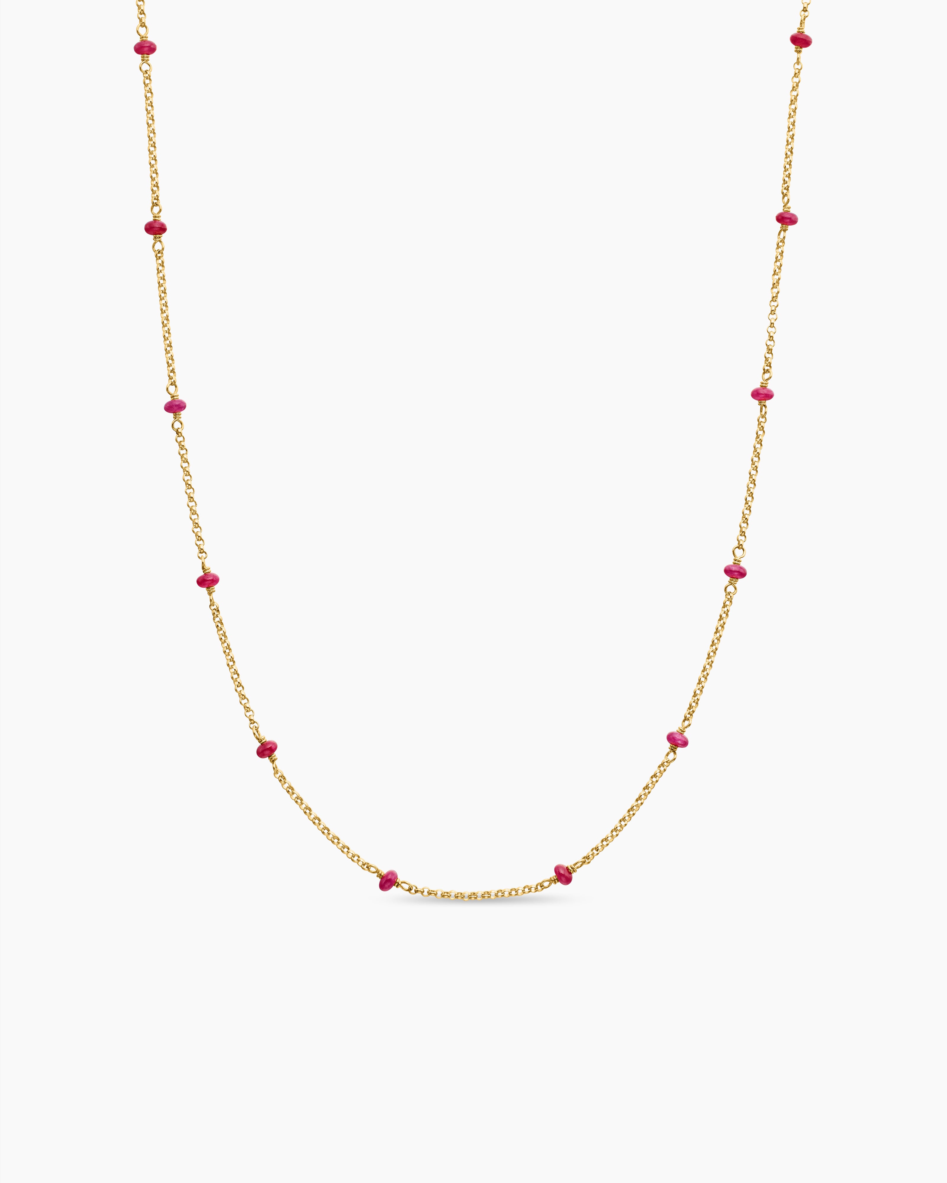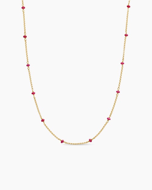 Cable Collectibles® Bead and Chain Necklace 18K Yellow Gold with Rubies, 3.5mm