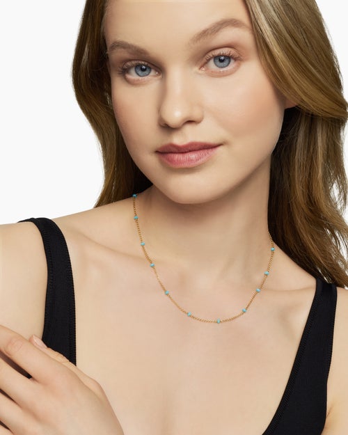 Cable Collectibles® Bead and Chain Necklace 18K Yellow Gold with Turquoise, 3.5mm