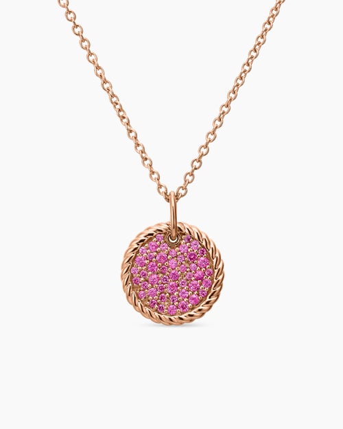 Cable Collectibles® Pavé Plate Necklace 18K Rose Gold with Pink Sapphires, 11mm