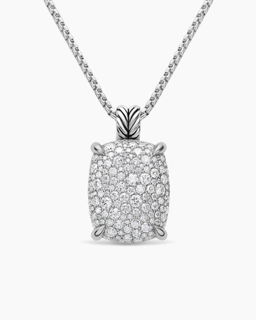 Chatelaine® Elongated Pendant Necklace Sterling Silver with Diamonds, 19mm