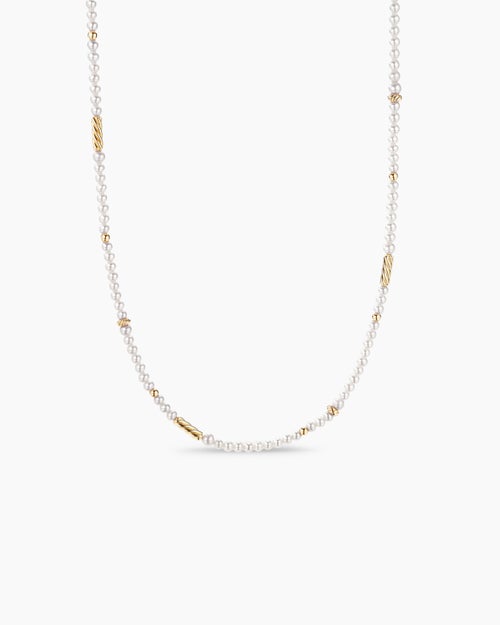 Color Bead Necklace 18K Yellow Gold with Pearls, 4mm