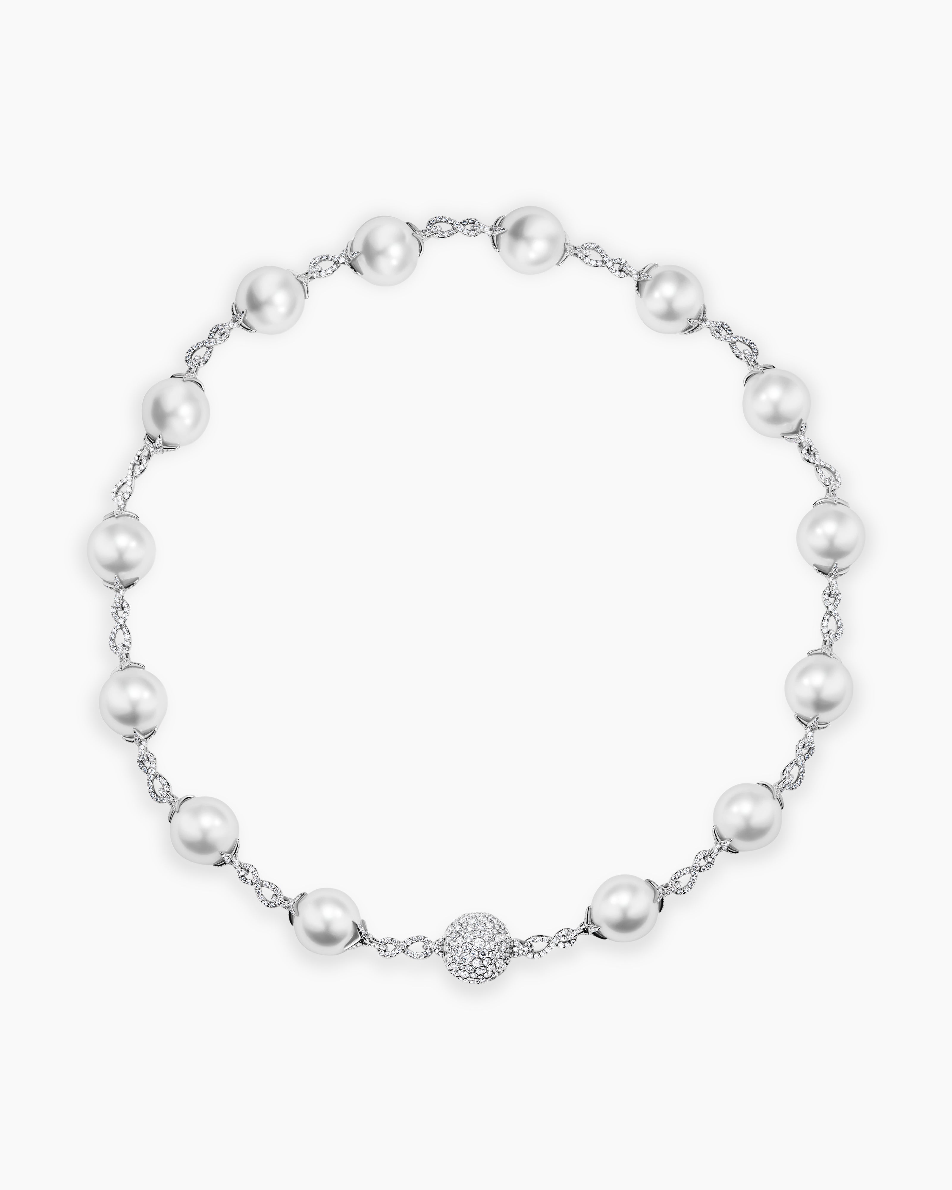 DY Lumina Pearl Classic Necklace White Gold with Diamonds