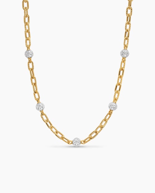 DY Madison® Pavé Bead Chain Necklace 18K Yellow Gold with Diamonds, 6mm