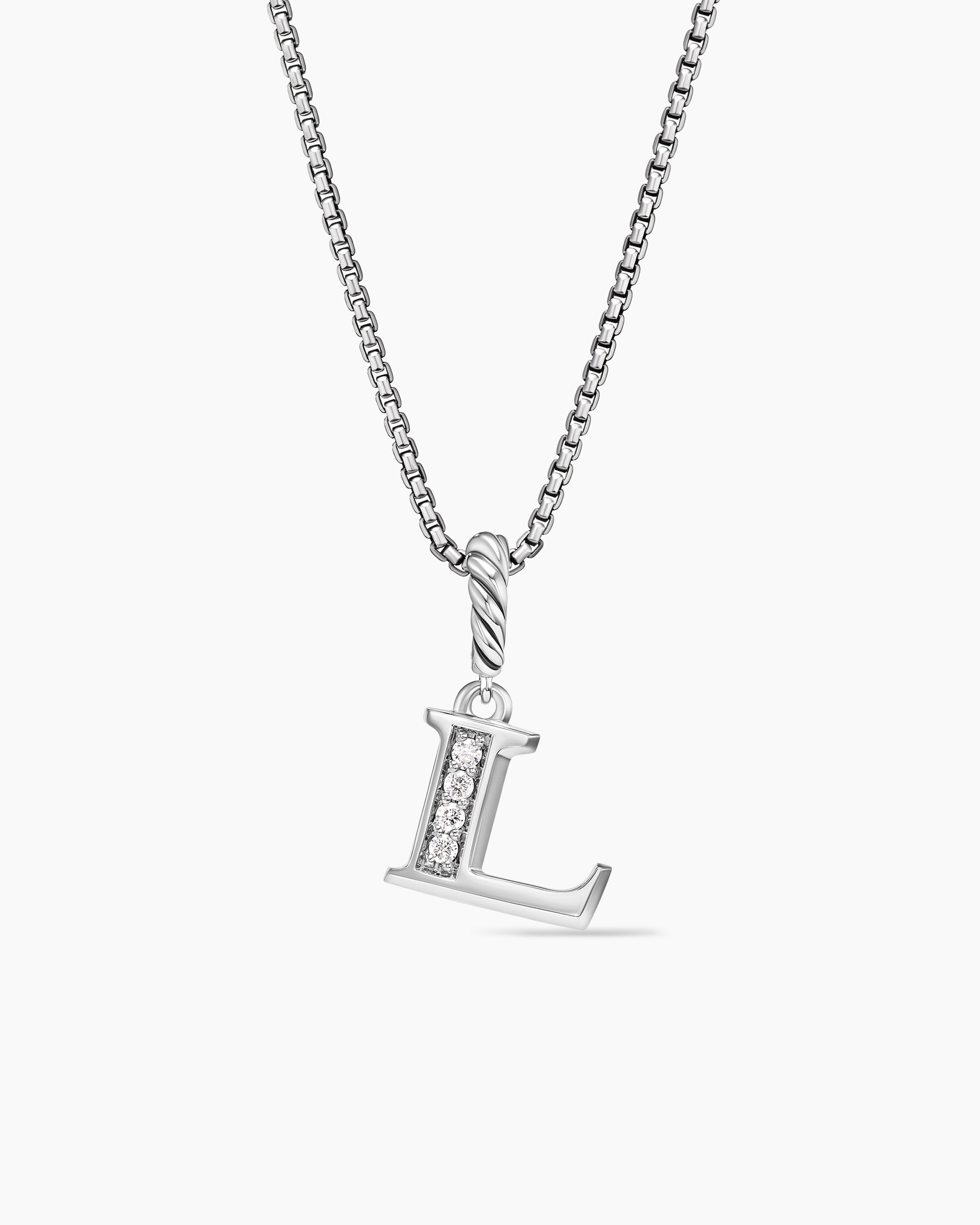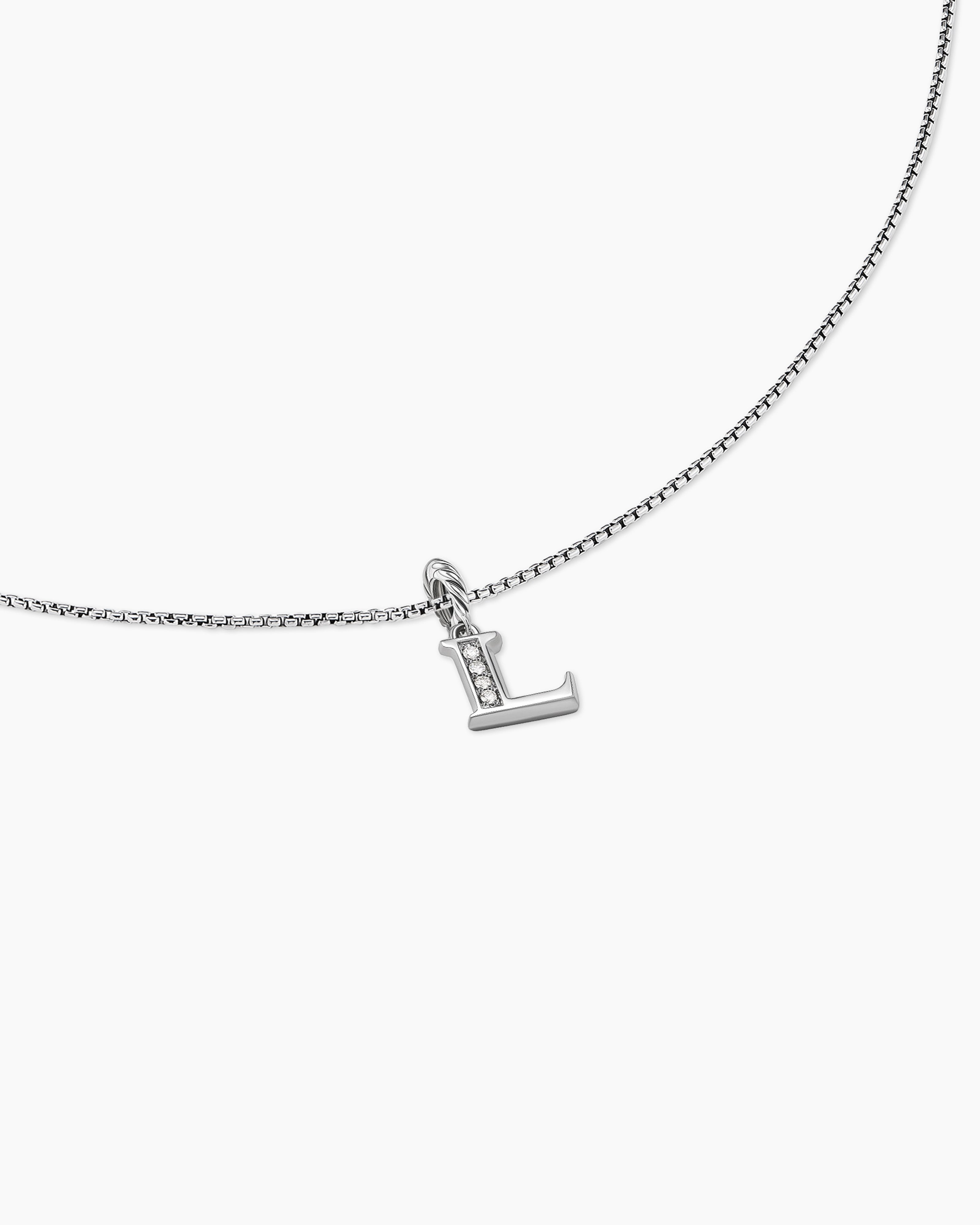 Pavé Initial Pendant Necklace Sterling Silver with Diamond L