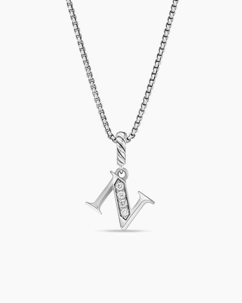 Pavé Initial Pendant Necklace Sterling Silver with Diamond N