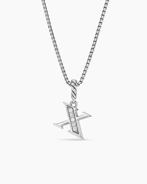 Pavé Initial Pendant Necklace Sterling Silver with Diamond X