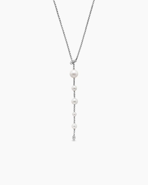 Pearl and Pavé Y Necklace Sterling Silver with Pearls and Diamonds