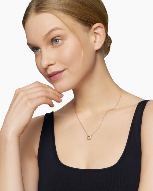 Petite Chatelaine® Pavé Bezel Pendant Necklace 18K Yellow Gold with Champagne Citrine and Diamonds, 7mm