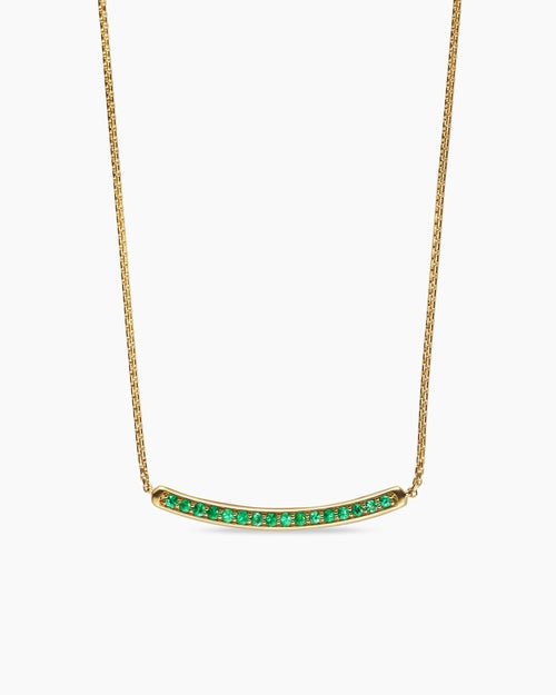Petite Pavé Bar Necklace 18K Yellow Gold with Emeralds, 1.25mm