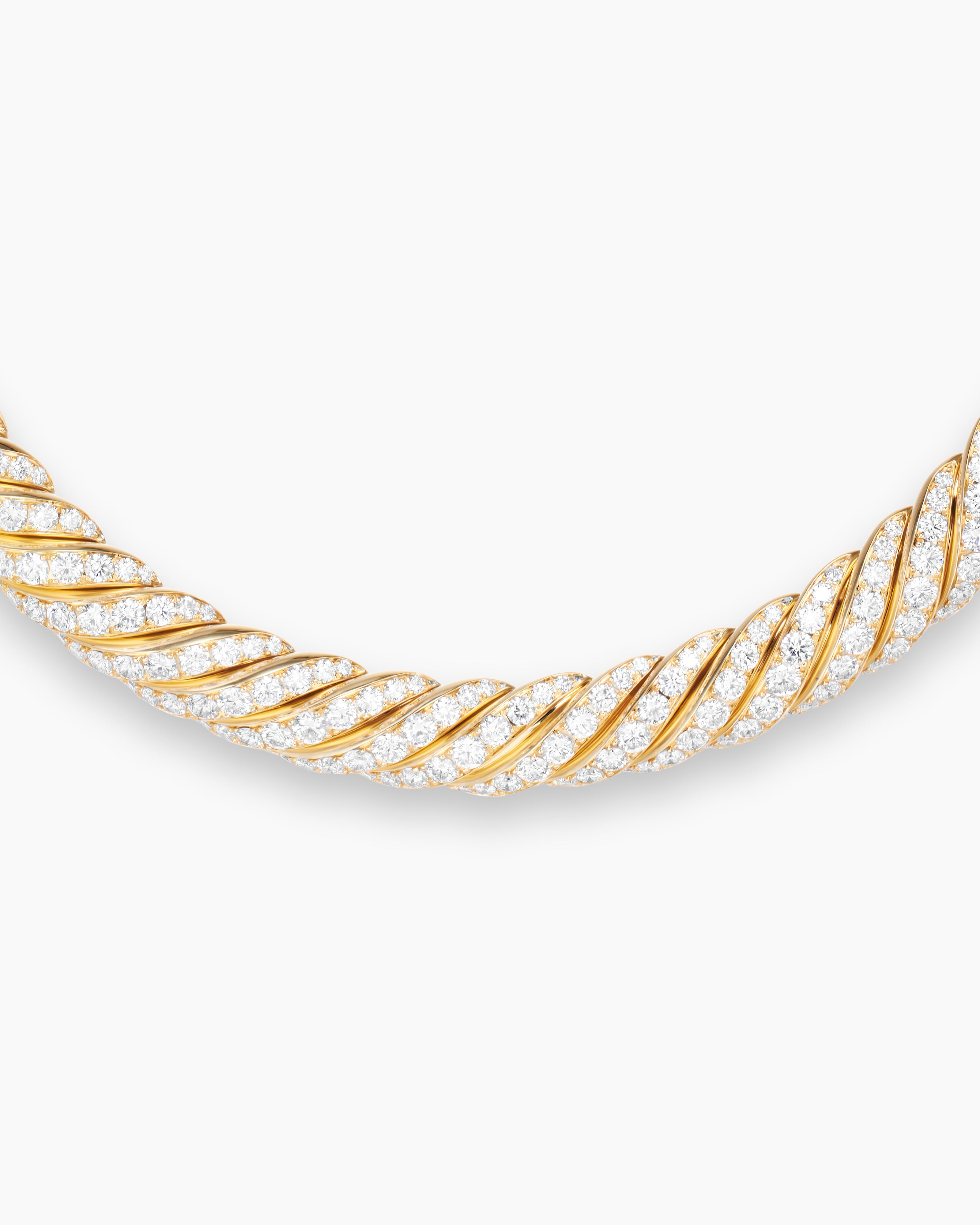 Sculpted Cable Flex Necklace 18K Yellow Gold with Diamonds, 9.5mm