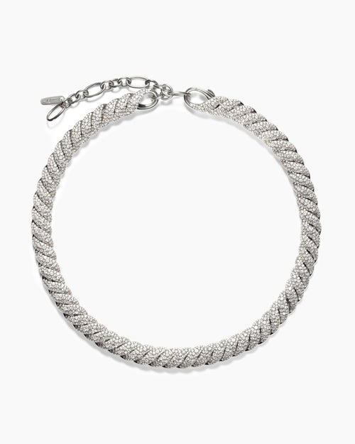 Sculpted Cable Necklace 18K White Gold with Diamonds, 8.5mm