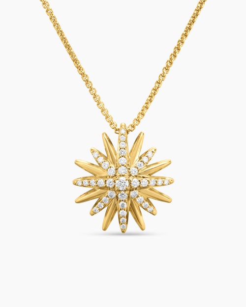 Starburst Pendant Necklace 18K Yellow Gold with Diamonds, 19mm