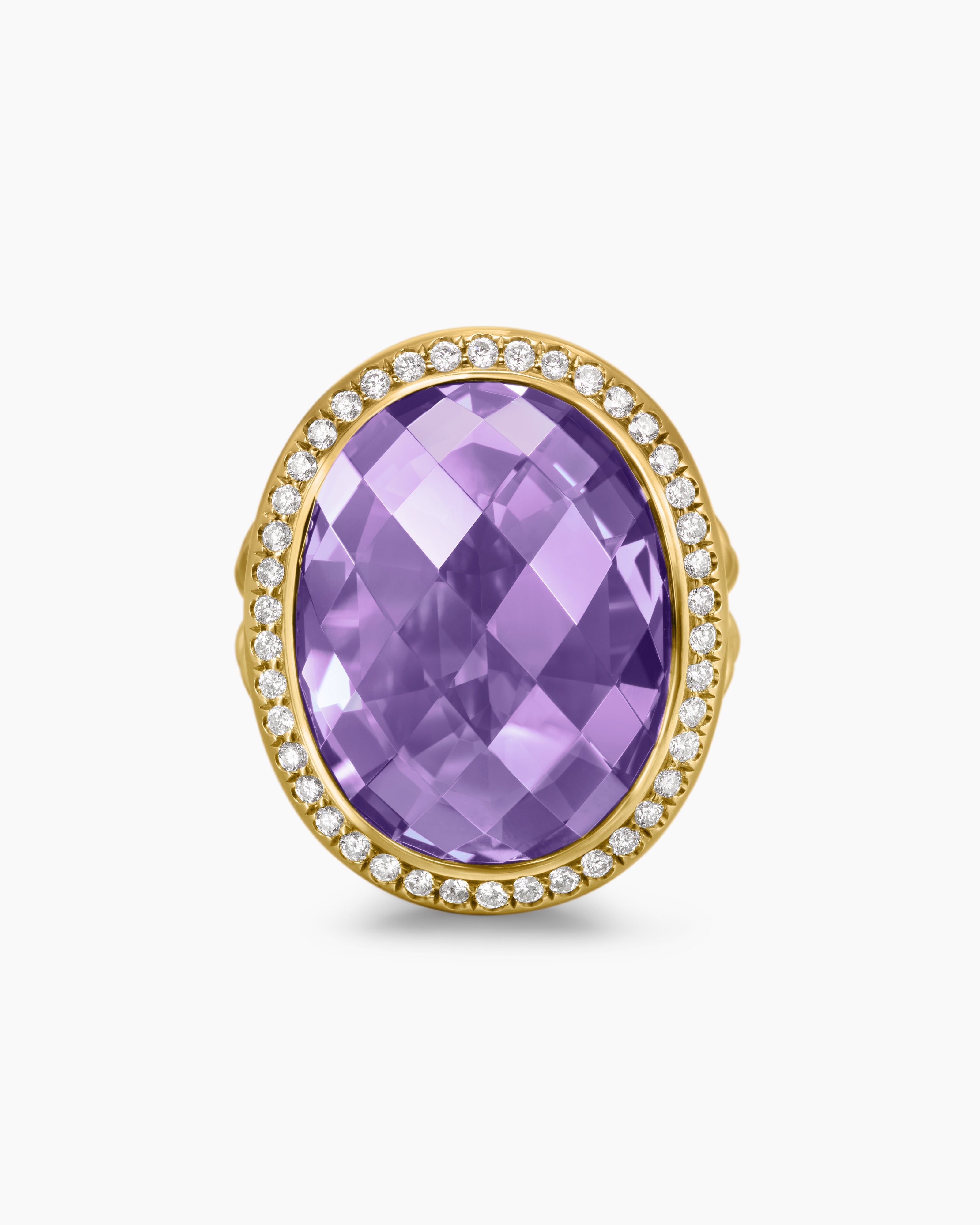 Albion® Oval Ring 18K Yellow Gold with Amethyst and Diamonds, 21mm