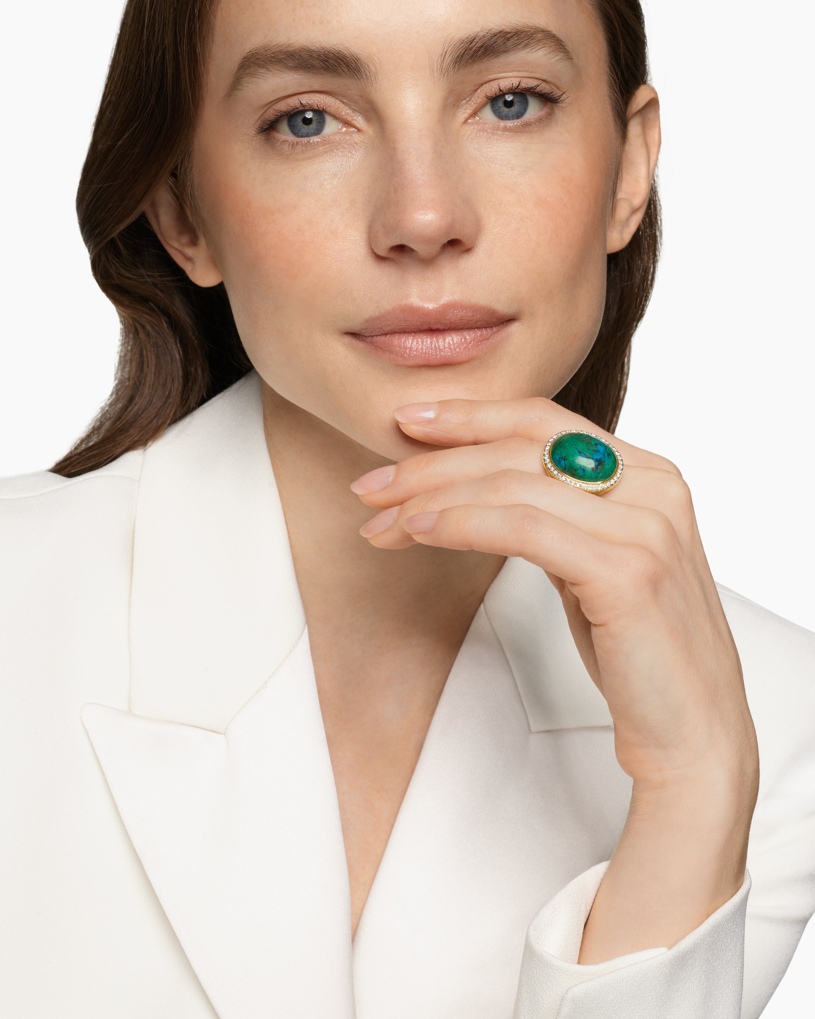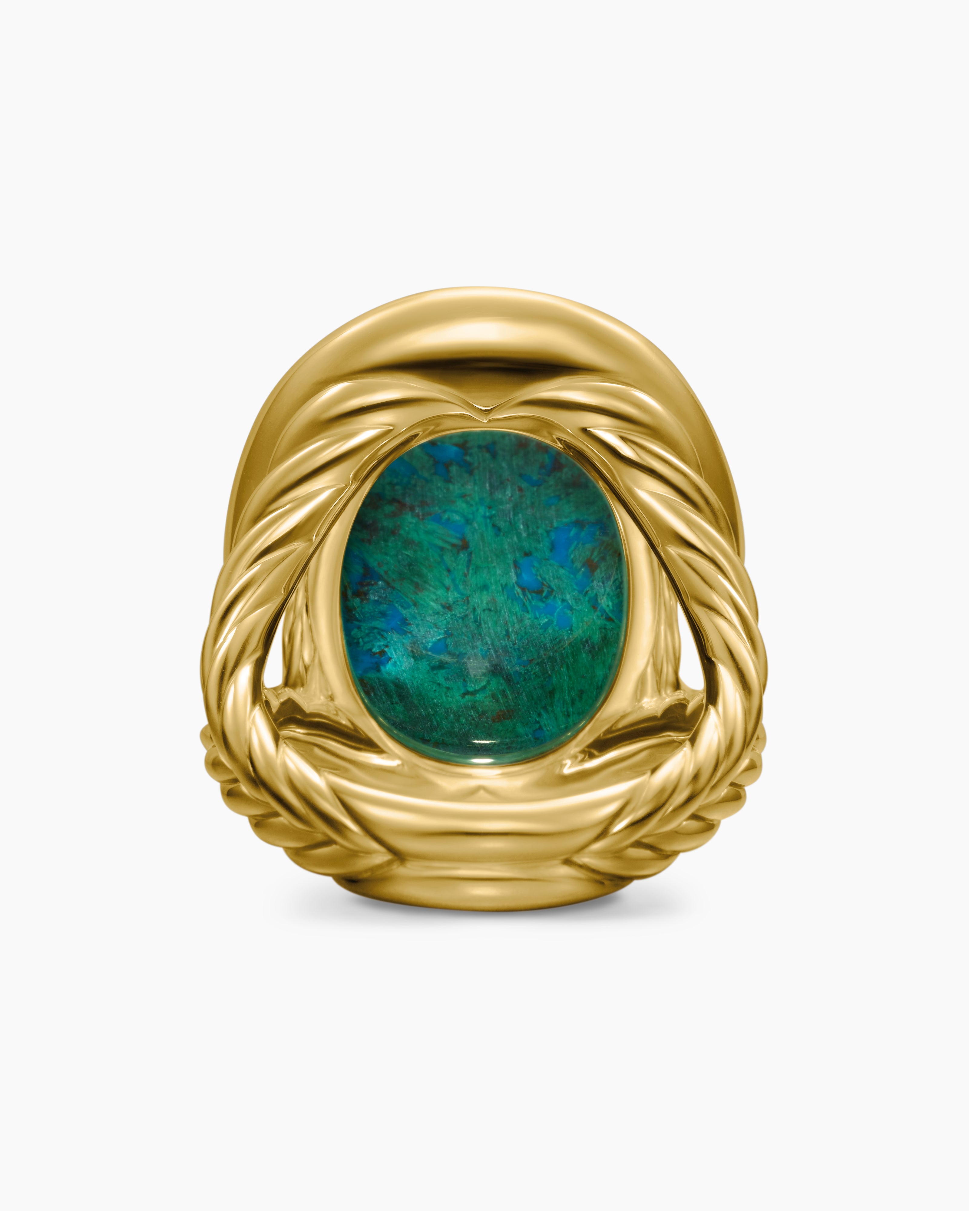 Albion® Oval Ring 18K Yellow Gold with Chrysocolla and Diamonds, 21mm