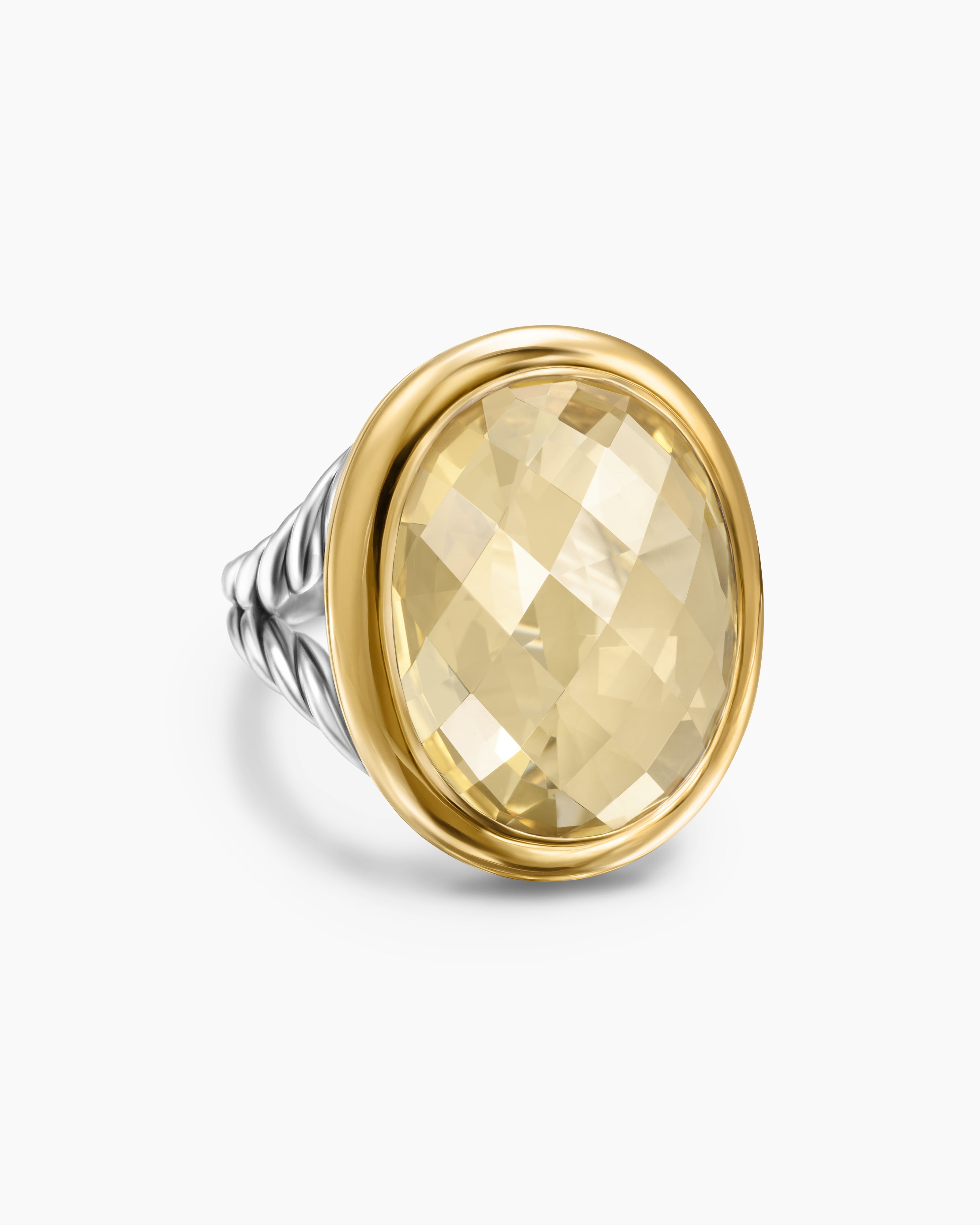 Albion® Oval Ring Sterling Silver with 18K Yellow Gold and Champagne Citrine, 21mm
