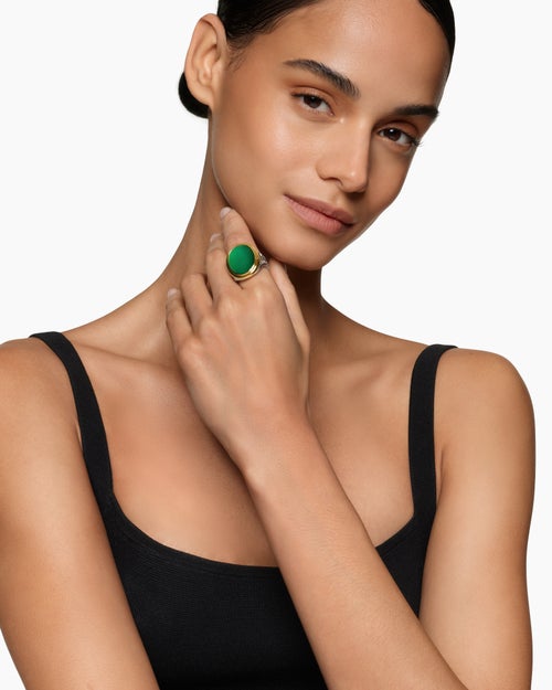 Albion® Oval Ring Sterling Silver with 18K Yellow Gold and Green Onyx, 21mm