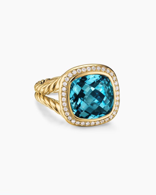 Albion® Ring 18K Yellow Gold with Hampton Blue Topaz and Diamonds, 11mm
