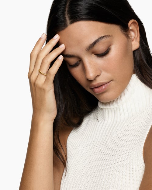 Use a soft cloth to gently wipe clean, then remove any remaining impurities with mild diluted soap. Rinse with warm water and dry thoroughly before storing in the provided jewelry pouch. Do not use abrasive cleaners, steamers or ultrasonic machines.Complimentary cleaning is available at any David Yurman Boutique, simply schedule an appointment.