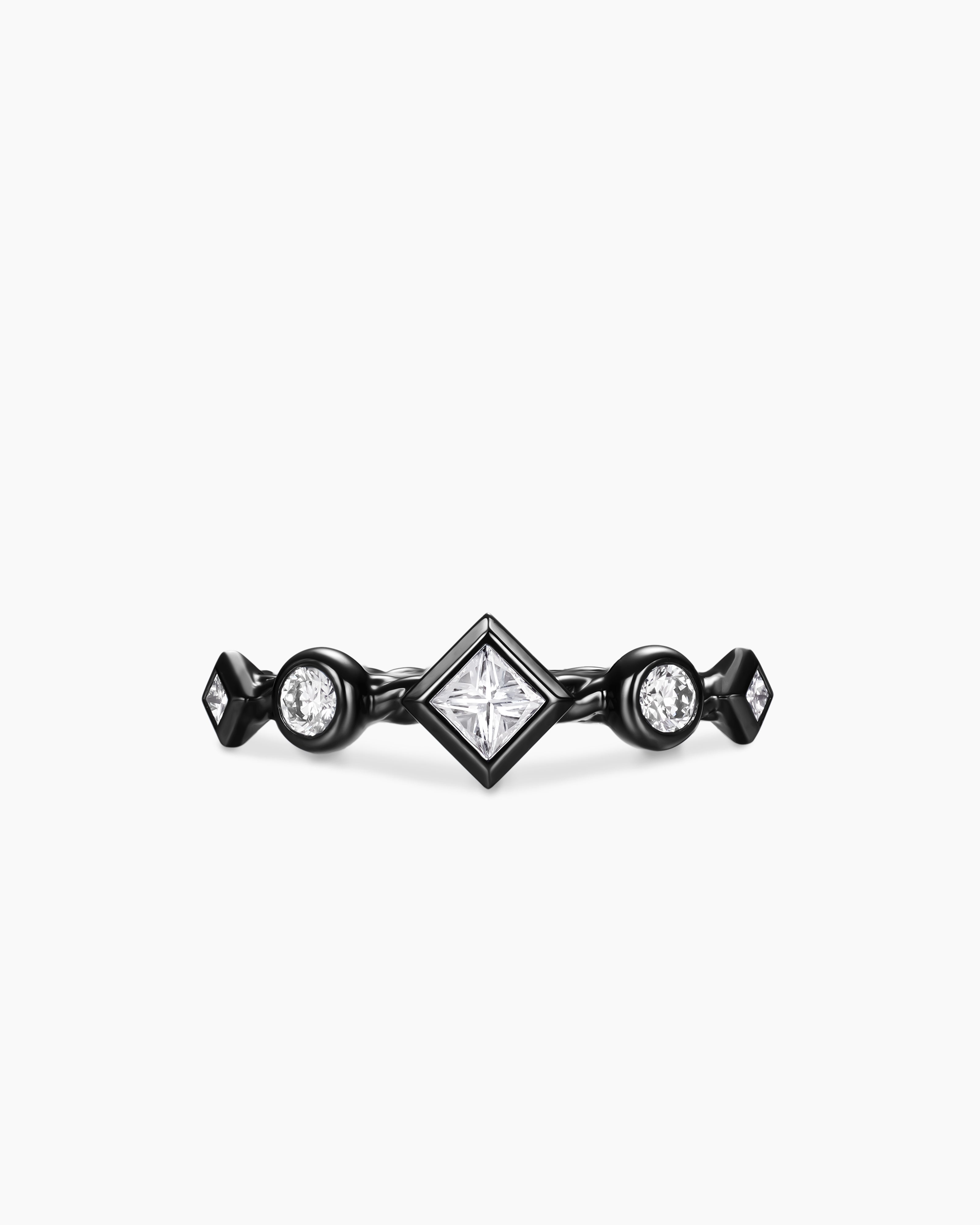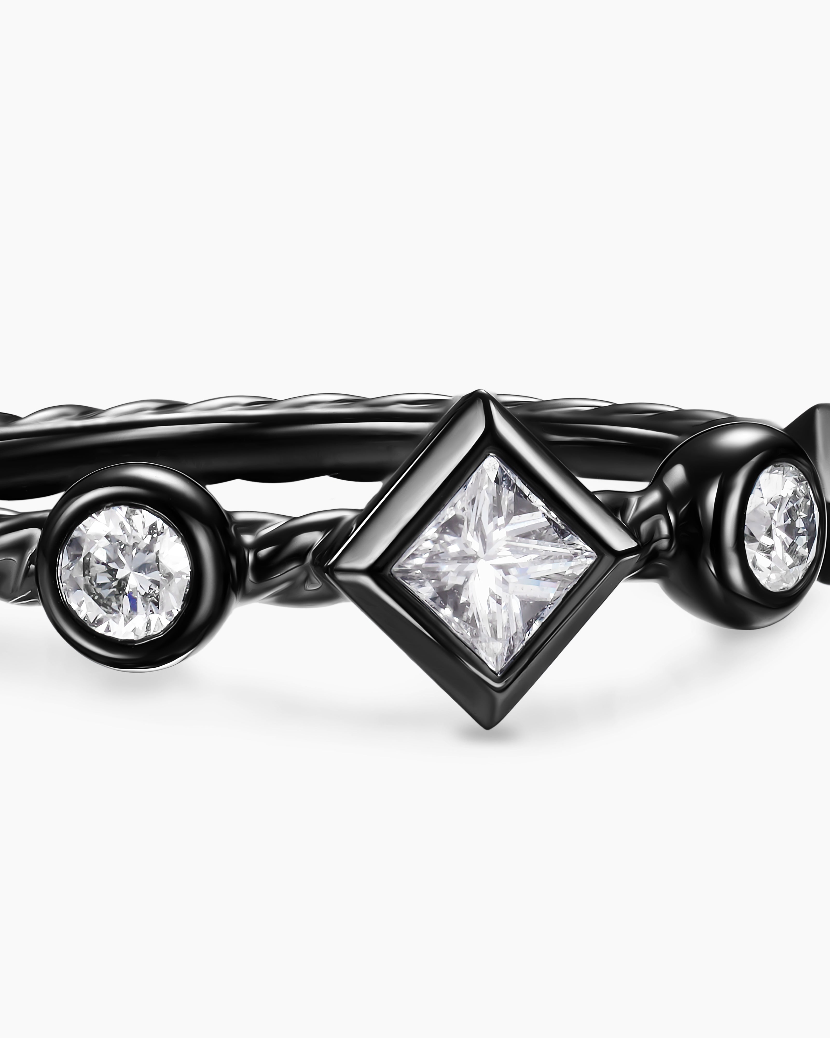 Cable Band Ring in Black Titanium with Diamonds, 6.4mm