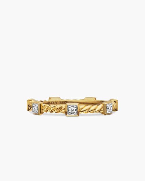 Cable Collectibles® Stations Stack Ring 18K Yellow Gold with Diamonds, 2mm