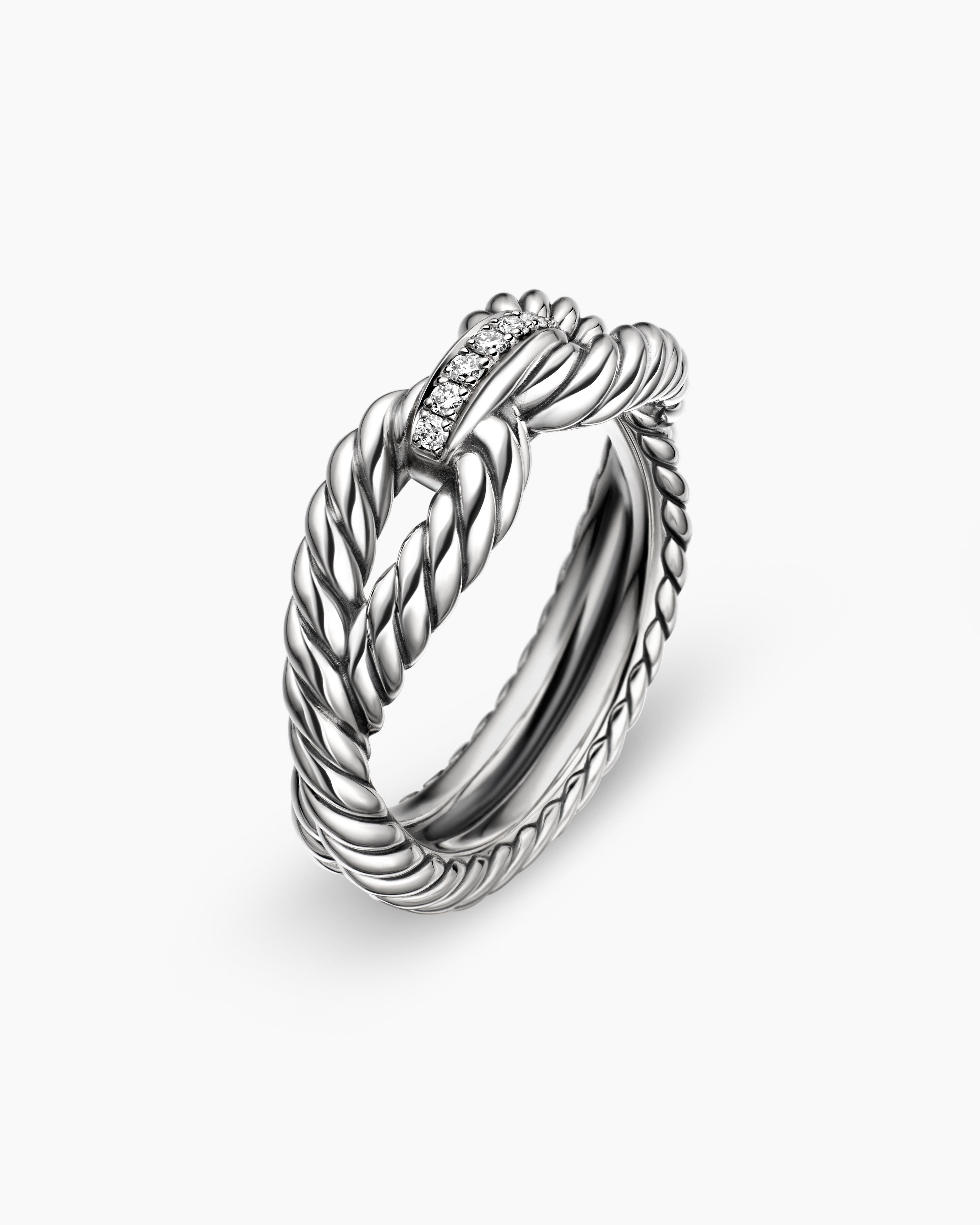 Using a dynamic range of smooth and Cabled cords, strands of silver or gold entwine to create a rhythmic cross of form and movement. The combination of gold and silver—now a David Yurman signature—is a key feature of the collection’s early iterations, which continues to evolve across rings, necklaces, bracelets, and earrings, often detailed with hand-set diamond pavé.