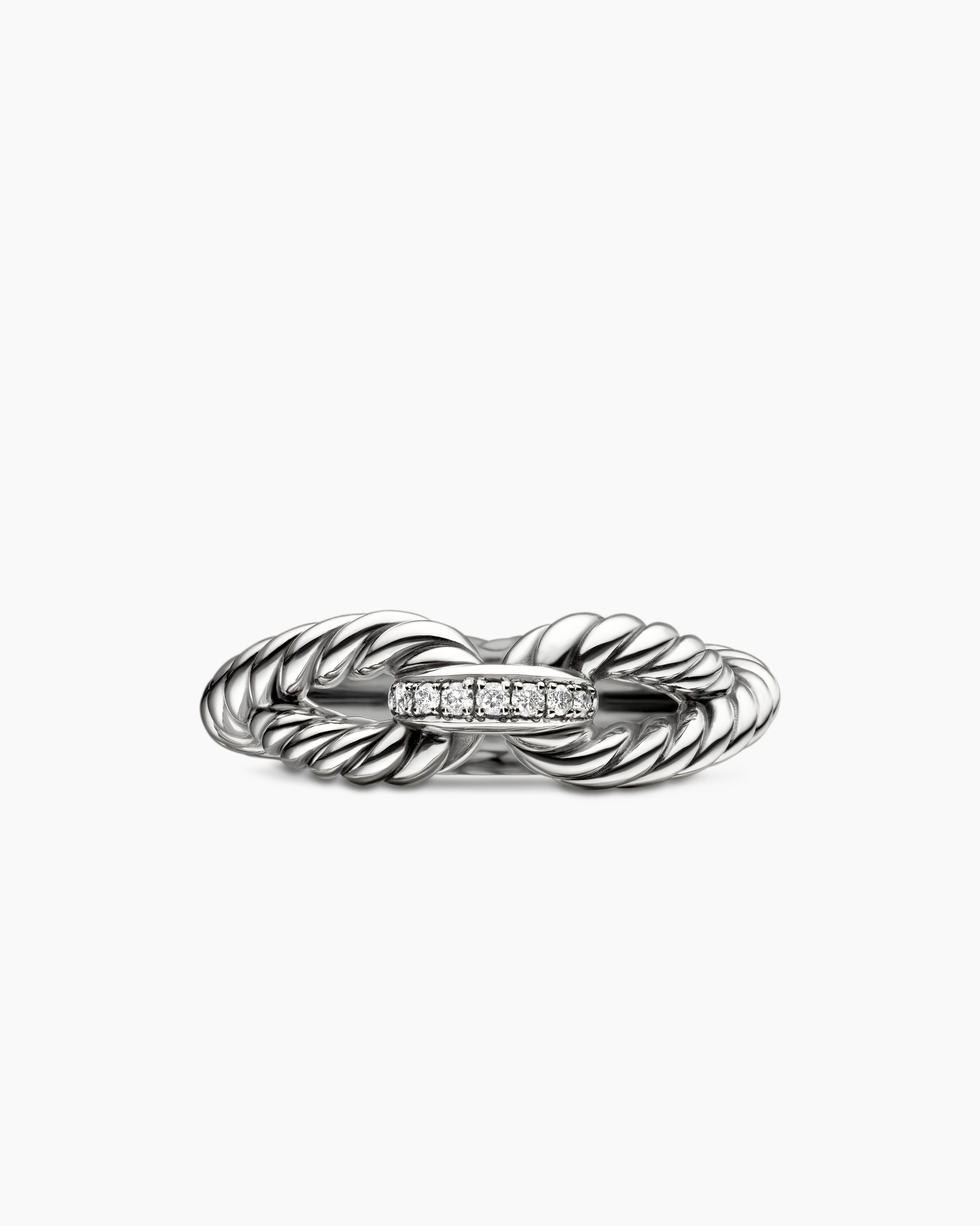 Cable Loop Band Ring Sterling Silver with Diamonds, 7mm