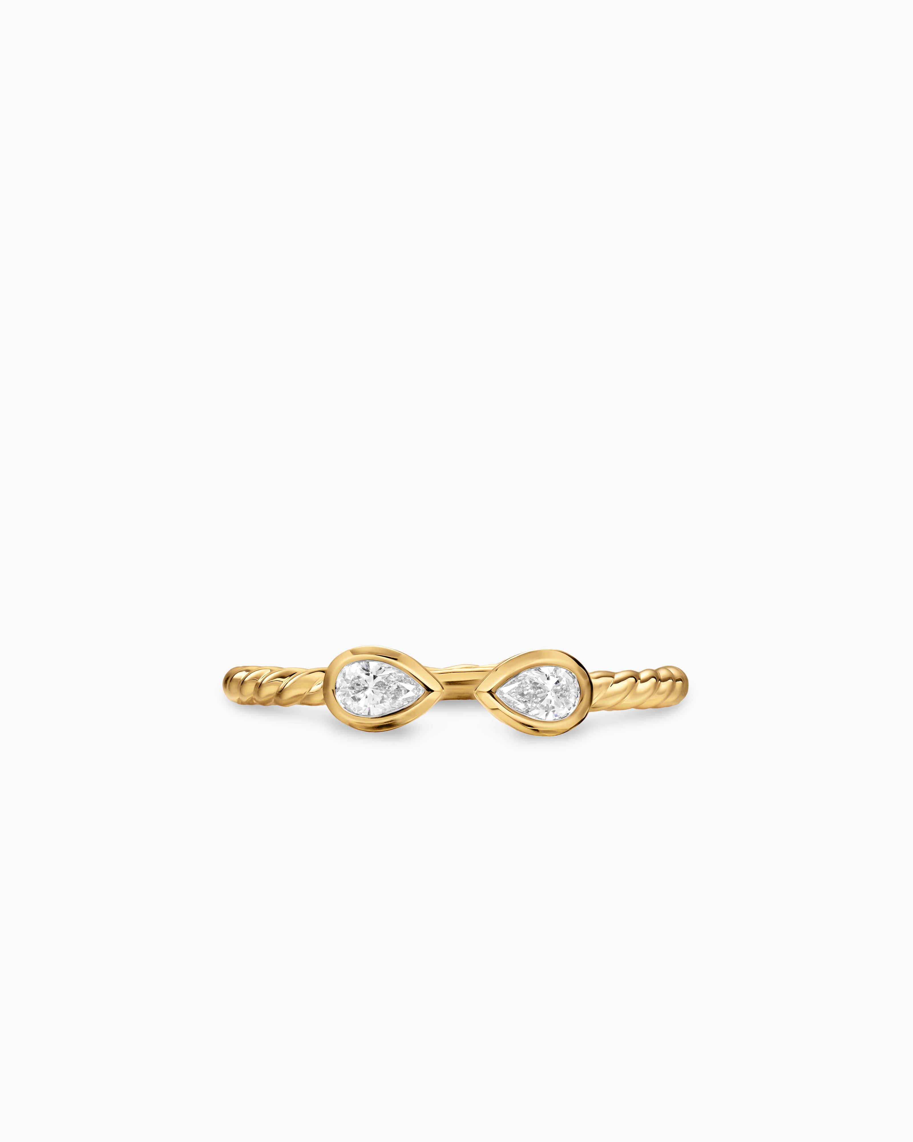 Cable Open Pear Ring 18K Yellow Gold with Diamonds, 3.7mm