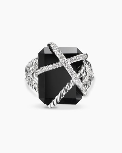 Cable Wrap Ring Sterling Silver with Black Onyx and Diamonds, 20.4mm
