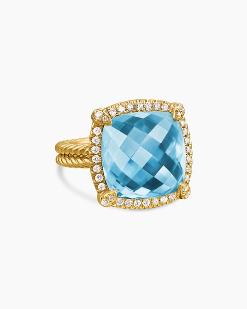 Chatelaine® Pavé Bezel Ring 18K Yellow Gold with Blue Topaz and Diamonds, 14mm