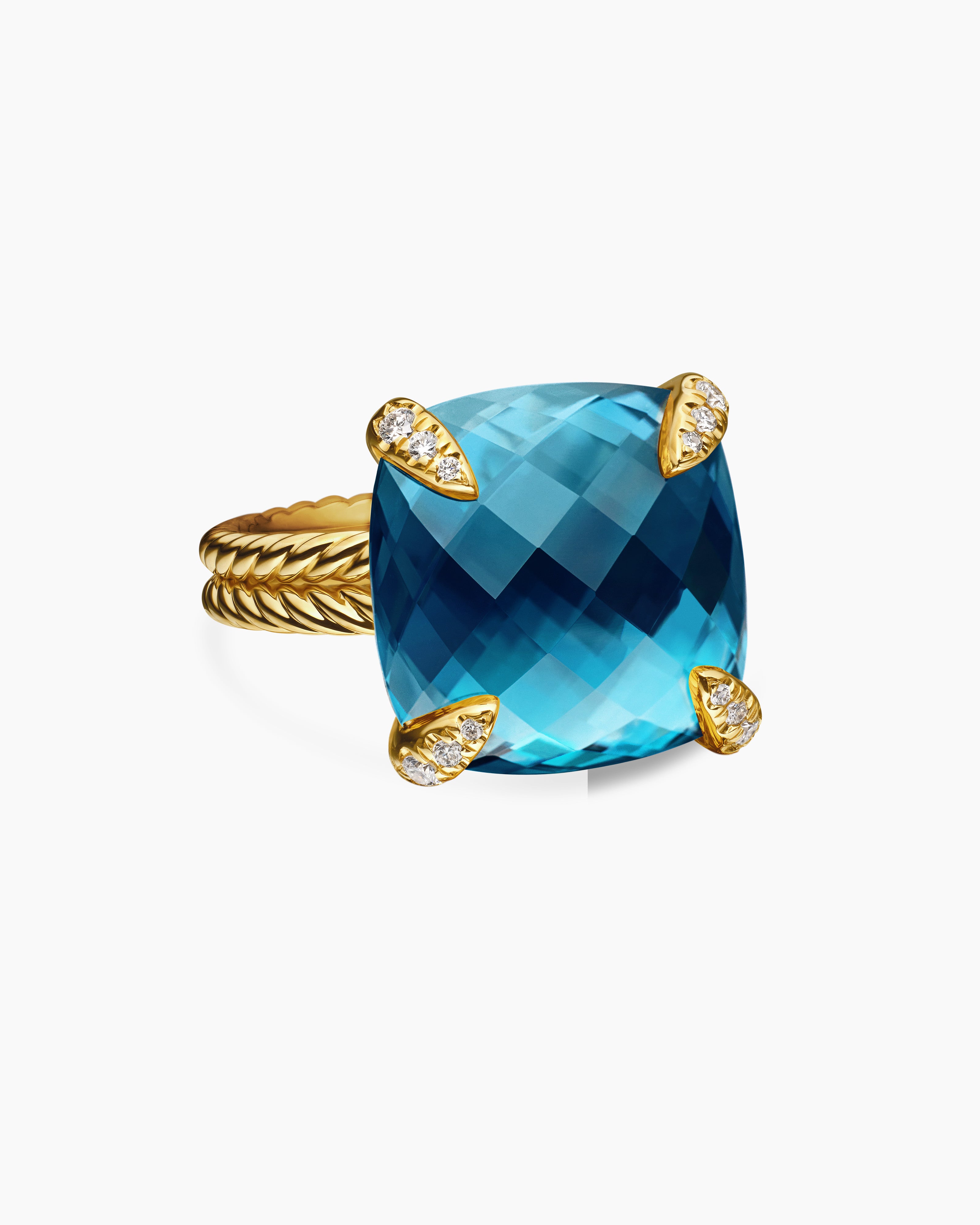 Chatelaine® Ring 18K Yellow Gold with Hampton Blue Topaz and Diamonds, 14mm