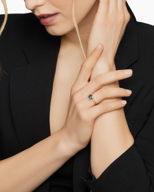 Châtelaine® highlights Sybil’s eye for color and David’s unconventional artistry. Chromatic gemstones are rendered in David’s signature faceted cushion cut. There are sultry shades of blue topaz, tangy lemon citrine, and regal lavender amethysts throughout the vibrant collection, accentuated with iconic Cable elements and punctuated by sparkling diamond pavé.