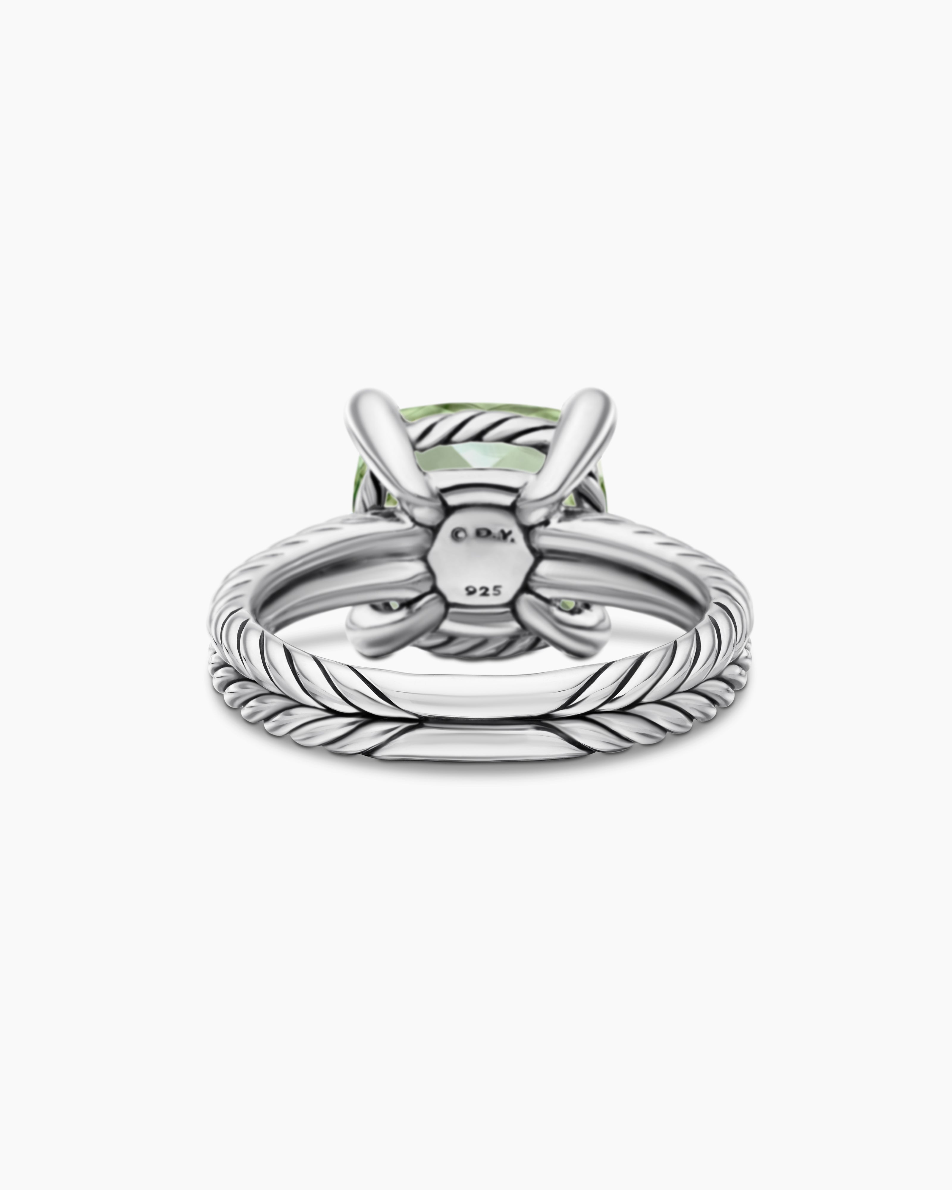 Use the white side of the provided David Yurman polishing cloth to gently wipe silver portions clean. Remove any remaining tarnish or impurities with mild diluted soap and warm water. Dry thoroughly before storing the design in its jewelry pouch.Gemstone Care