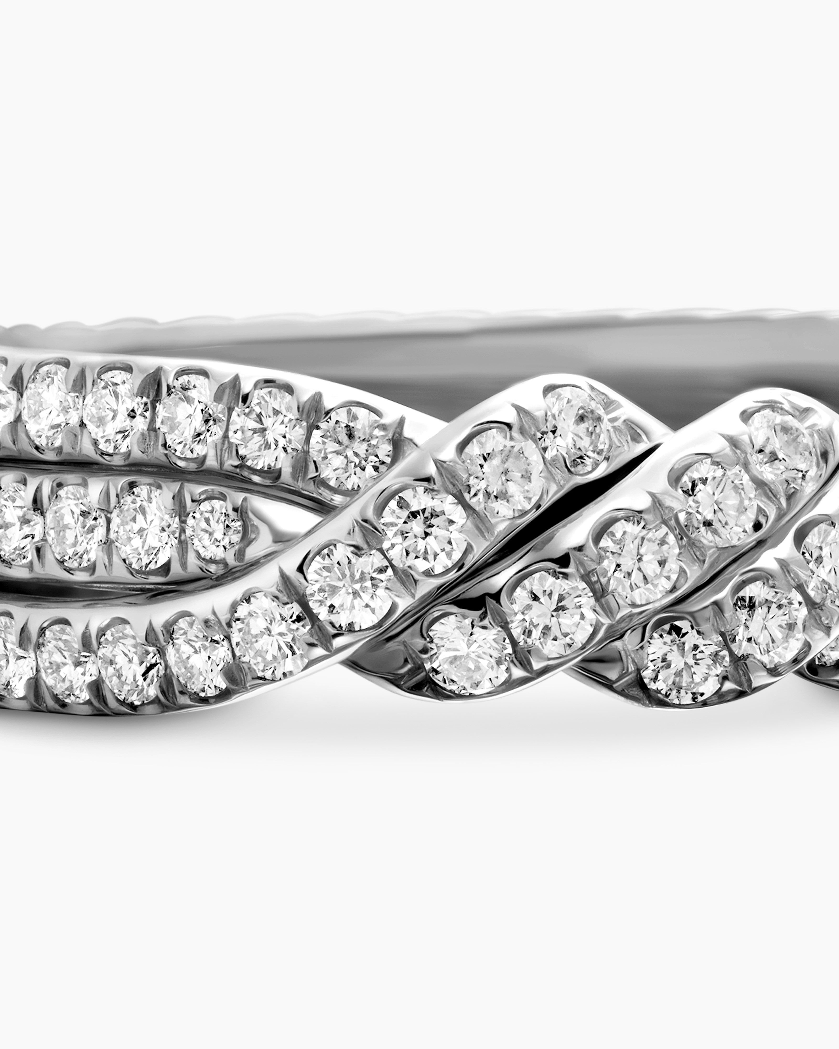- Pavé-set diamonds, total carat weight ranges from 0.66 to 0.72 (dependent on size)