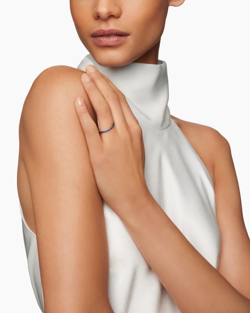 DY Eden Band Ring Platinum with Pavé Blue Sapphires, 1.85mm