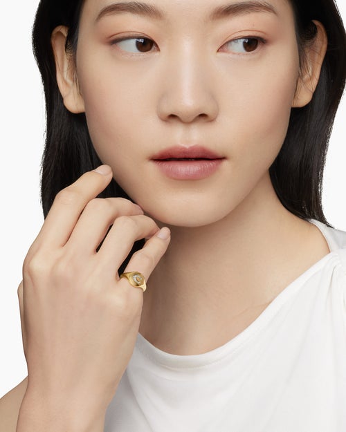 DY Initial Pinky Ring 18K Yellow Gold with Diamond C, 9.8mm