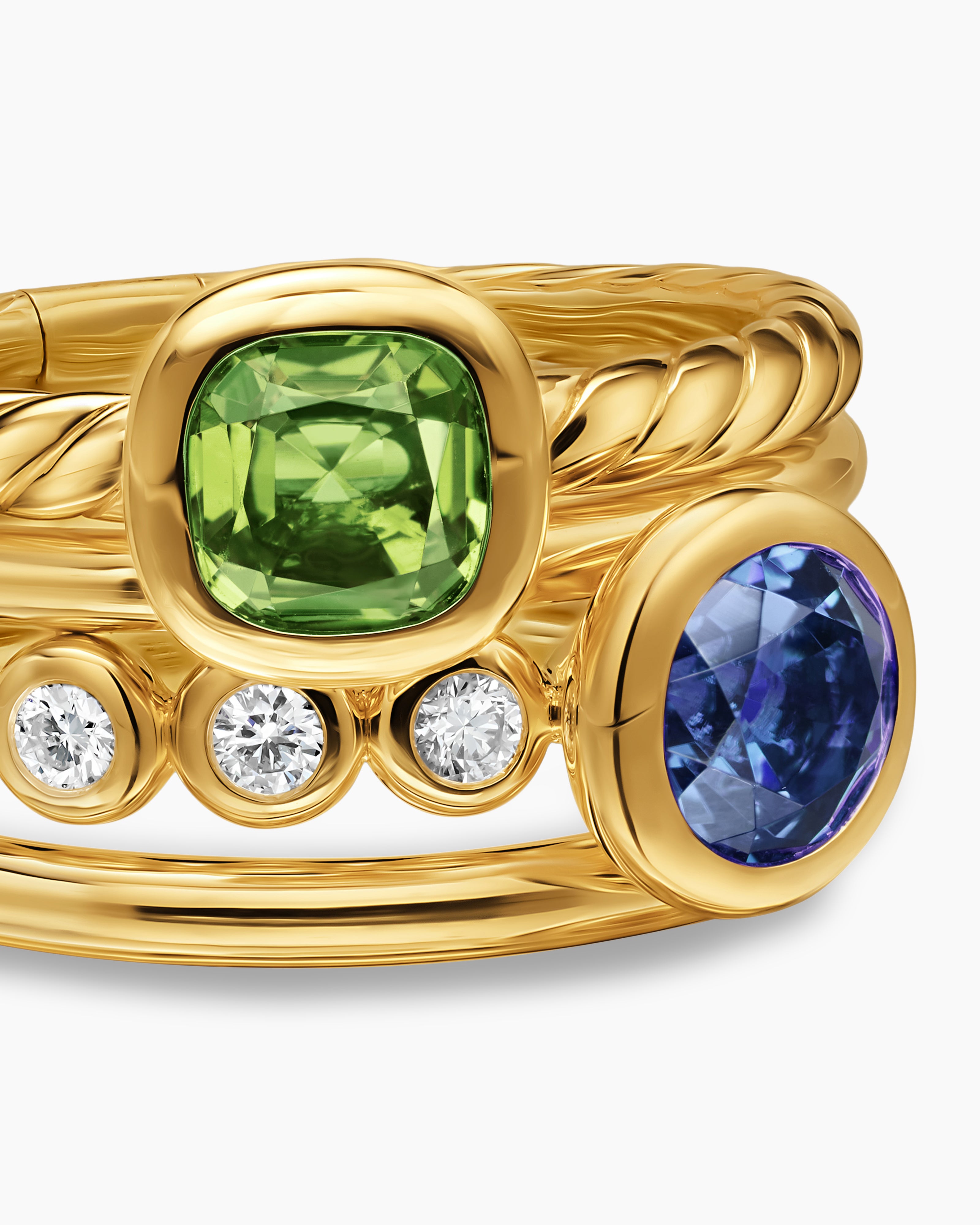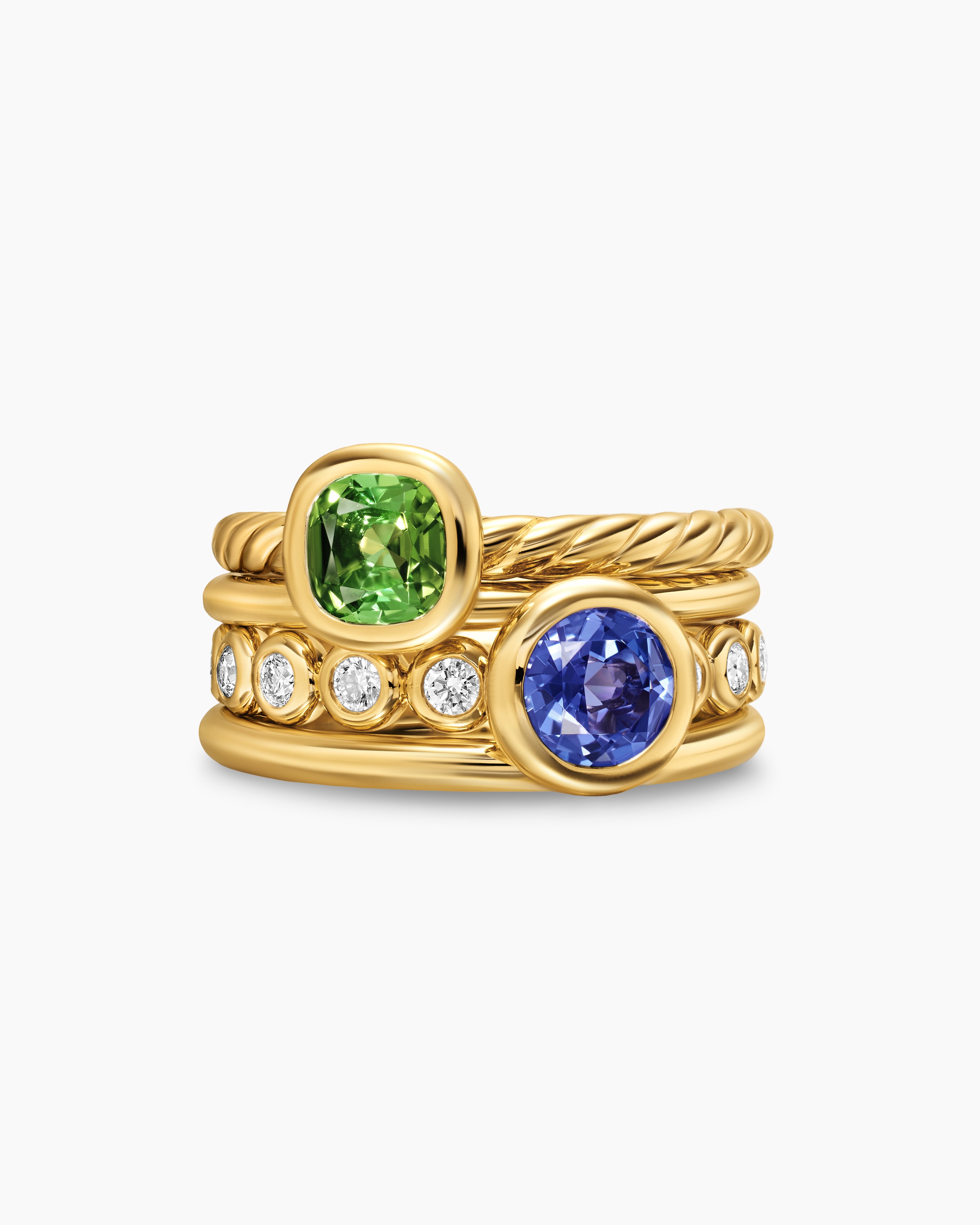 DY Mercer® Color Stone Multi Row Ring 18K Yellow Gold with Green Tourmaline, Tanzanite and Diamonds, 10mm