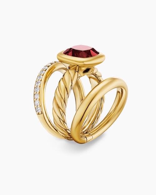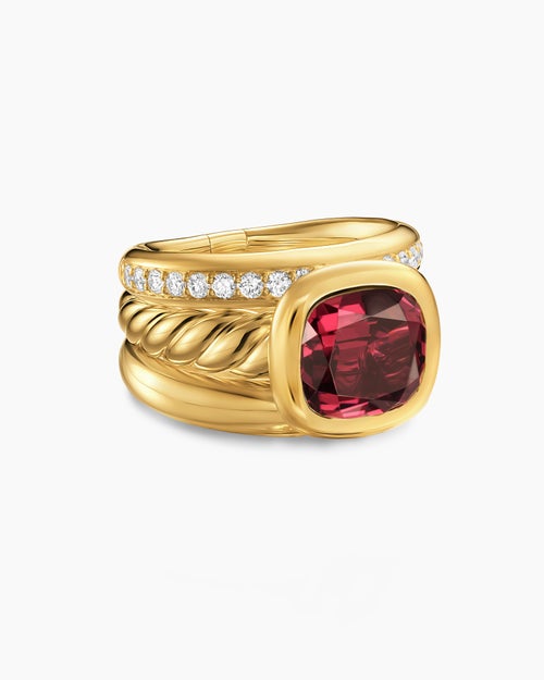 DY Mercer® Color Three Row Stone Ring 18K Yellow Gold with Rhodolite Garnet and Diamonds, 12mm