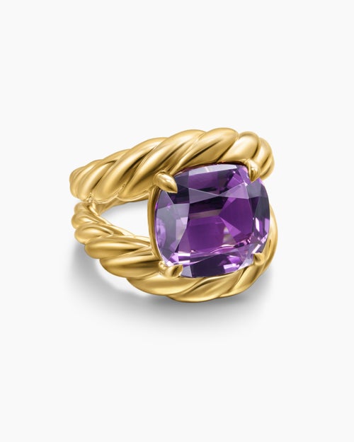 Châtelaine® highlights Sybil’s eye for color and David’s unconventional artistry. Chromatic gemstones are rendered in David’s signature faceted cushion cut. There are sultry shades of blue topaz, tangy lemon citrine, and regal lavender amethysts throughout the vibrant collection, accentuated with iconic Cable elements and punctuated by sparkling diamond pavé.