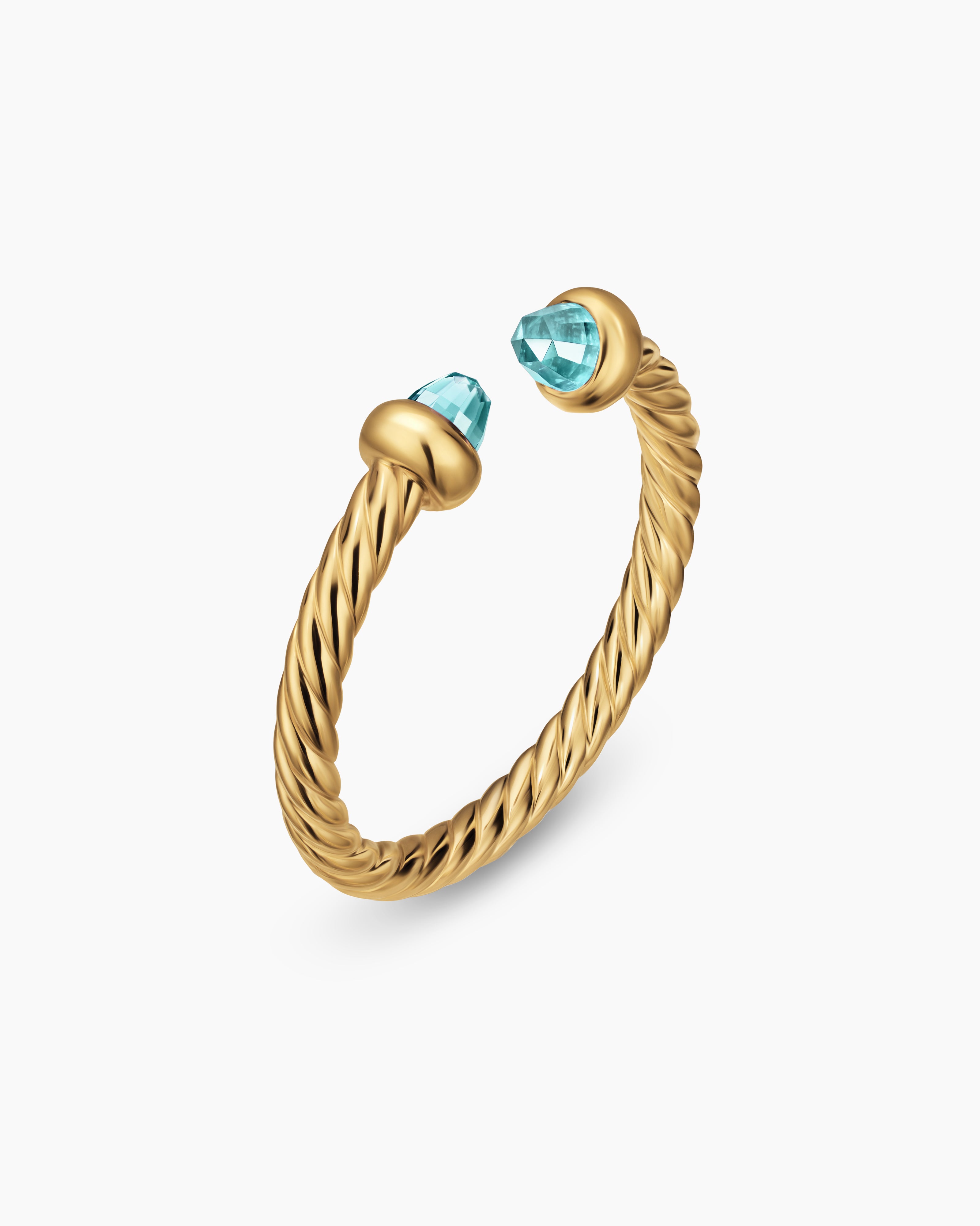 Micro Cablespira® Flex Open Ring 18K Yellow Gold with Aquamarine, 2.5mm