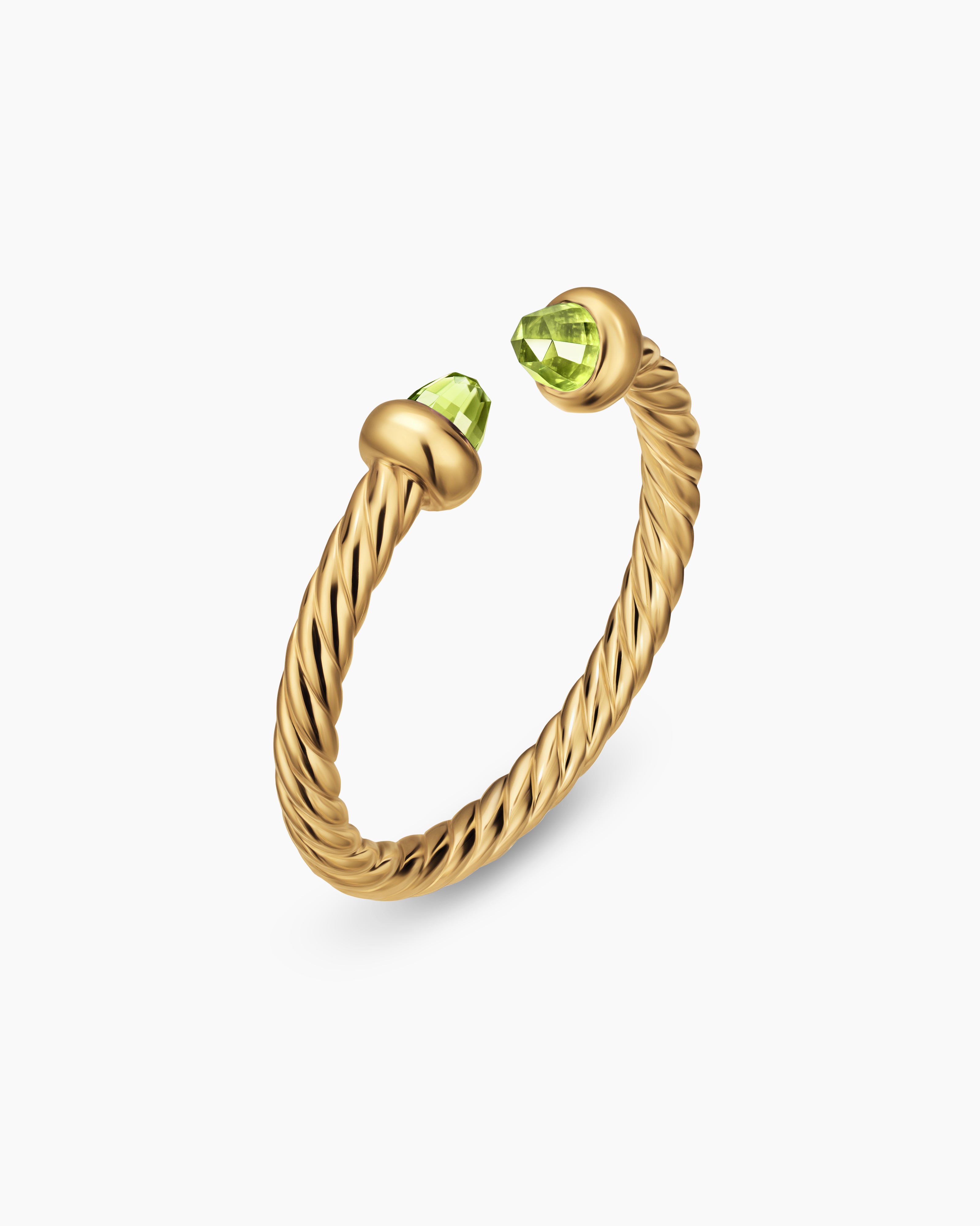 Micro Cablespira® Flex Open Ring 18K Yellow Gold with Peridot, 2.5mm