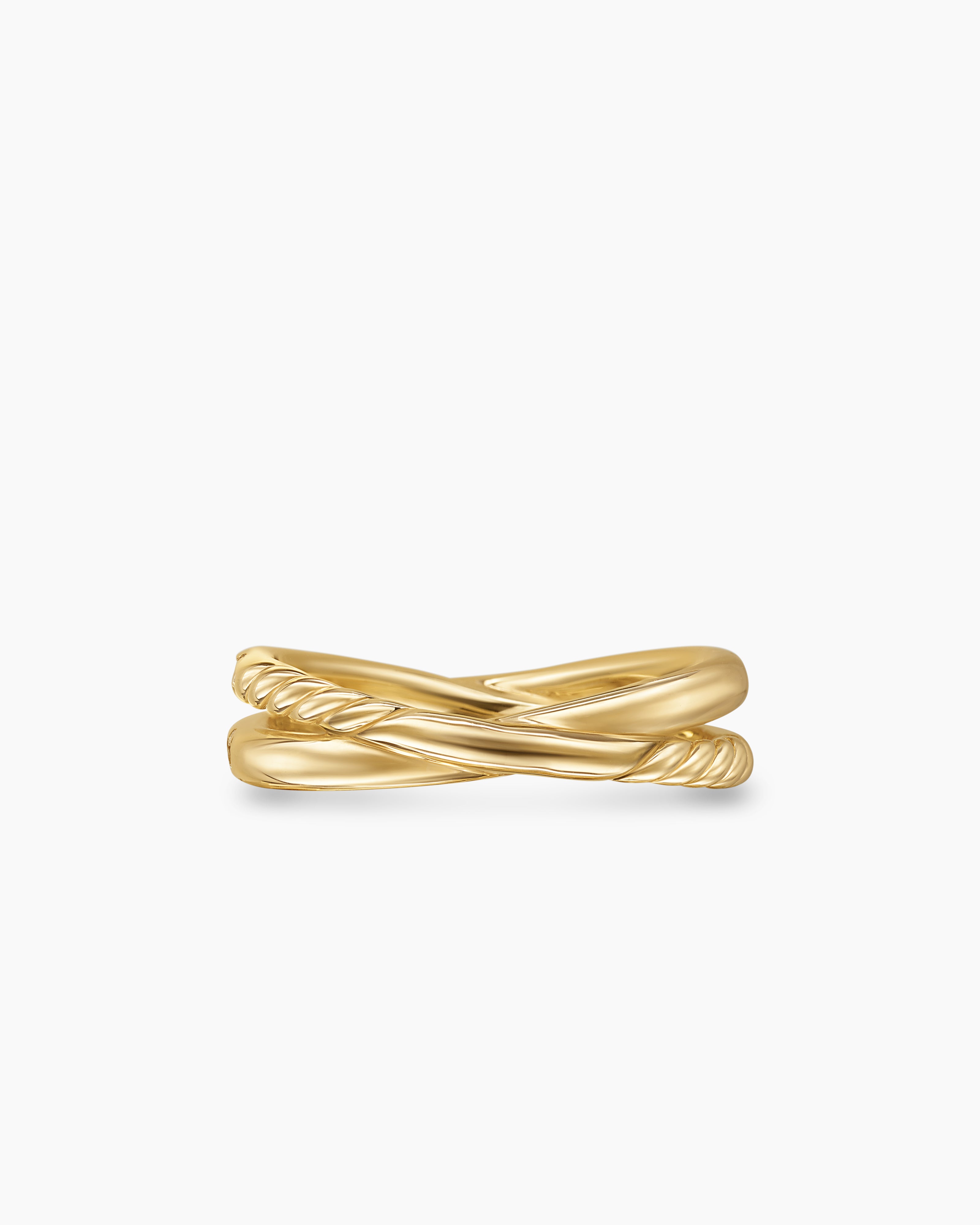 Using a dynamic range of smooth and Cabled cords, strands of silver or gold entwine to create a rhythmic cross of form and movement. The combination of gold and silver—now a David Yurman signature—is a key feature of the collection’s early iterations, which continues to evolve across rings, necklaces, bracelets, and earrings, often detailed with hand-set diamond pavé.