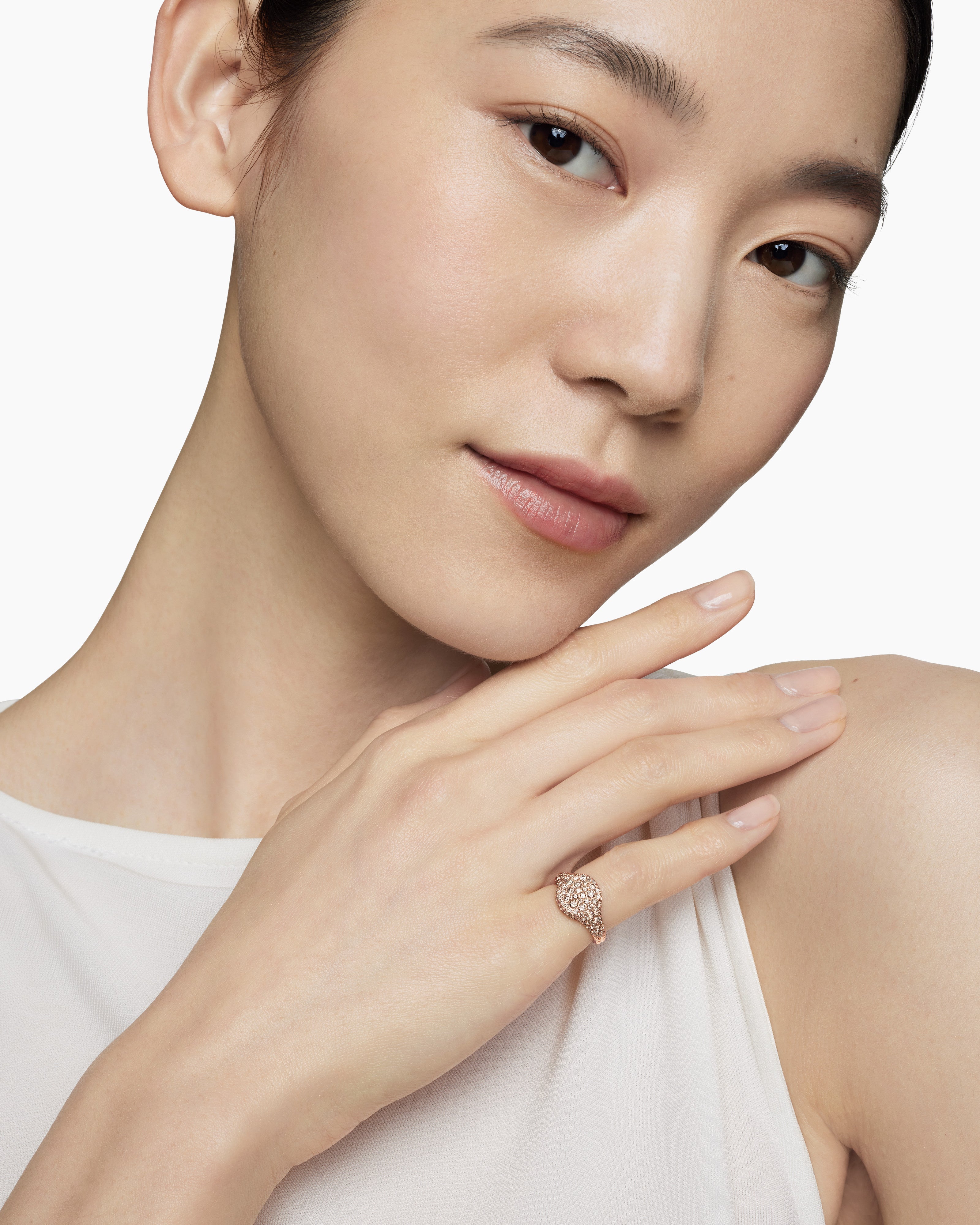 Pavé Pinky Ring 18K Rose Gold with Cognac Diamonds, 10mm