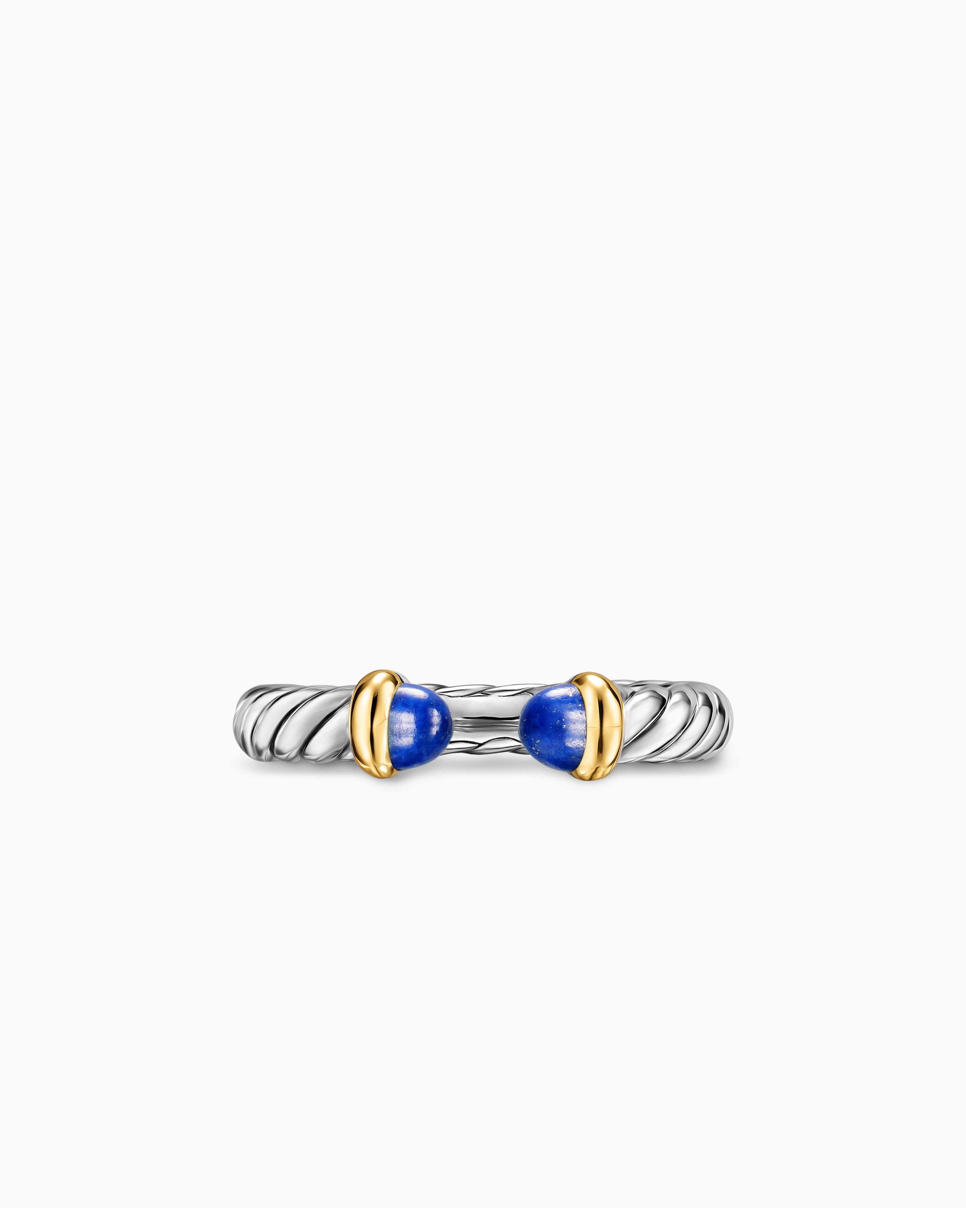 Petite Cable Open Ring Sterling Silver with 14K Yellow Gold and Lapis, 3.4mm