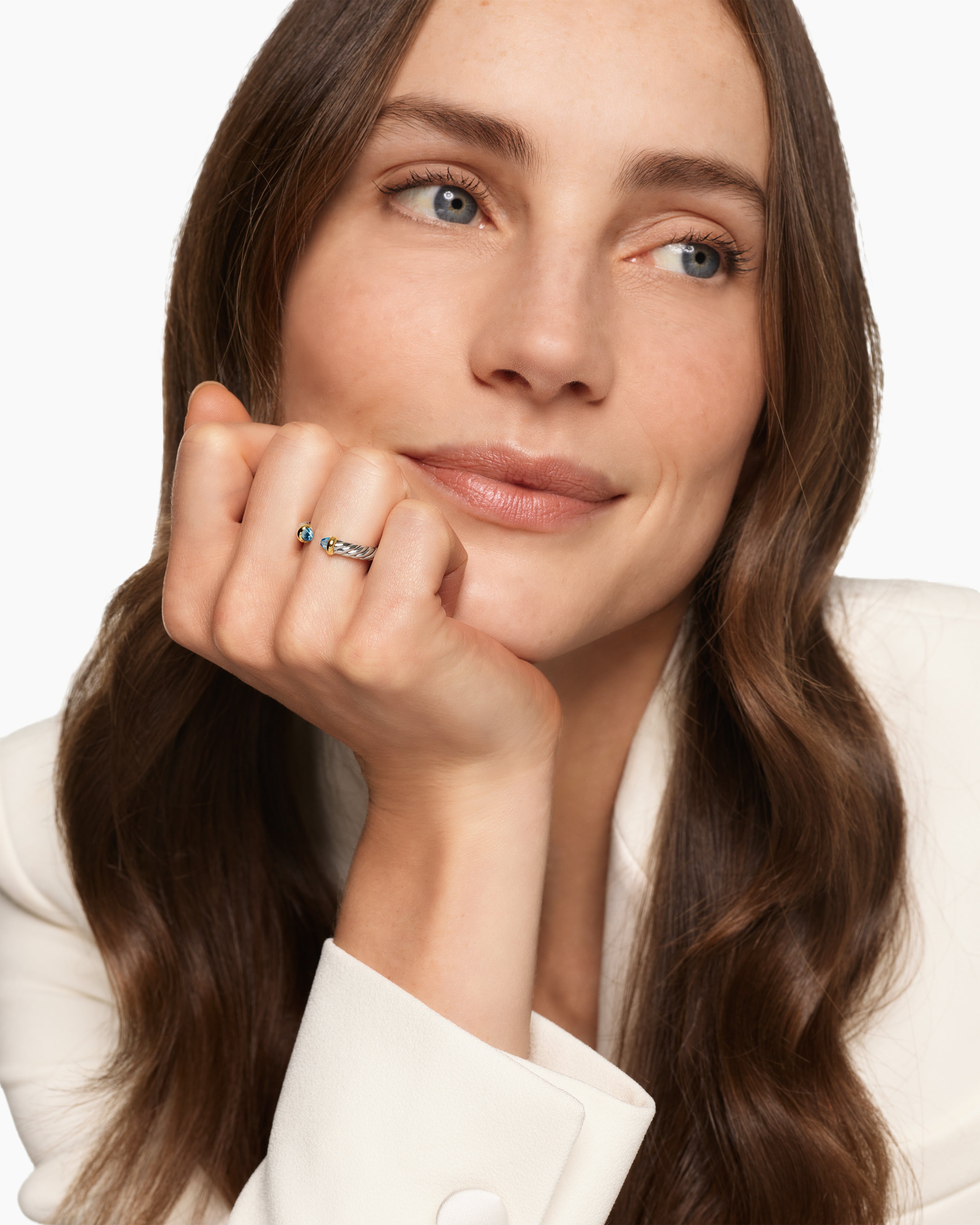 Use a soft cloth to gently wipe clean, then remove any remaining impurities with mild diluted soap. Rinse with warm water and dry thoroughly before storing in the provided jewelry pouch.Complimentary cleaning is available at any David Yurman Boutique, simply schedule an appointment.