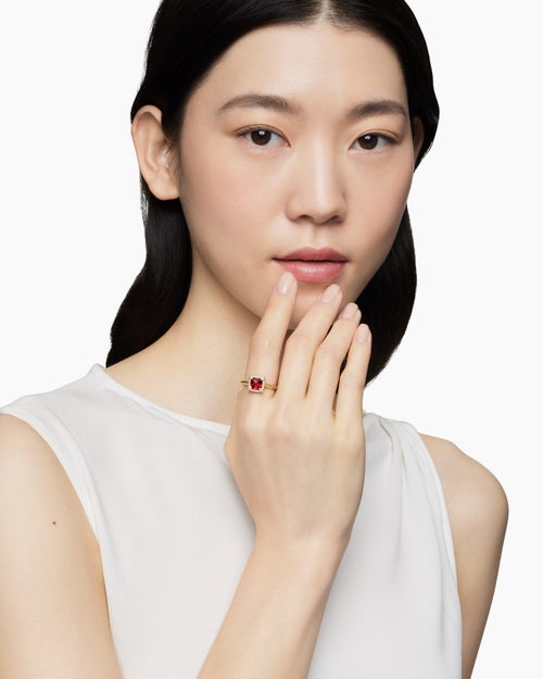 Petite Chatelaine® Pavé Bezel Ring 18K Yellow Gold with Garnet and Diamonds, 7mm