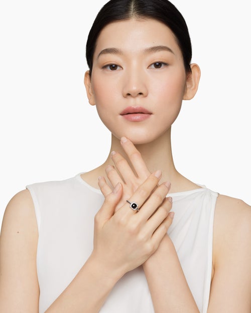 Petite Chatelaine® Pavé Bezel Ring Sterling Silver with Black Onyx and Diamonds, 7mm