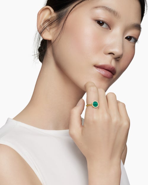 Petite DY Elements® Ring 18K Yellow Gold with Malachite and Diamonds, 11.3mm