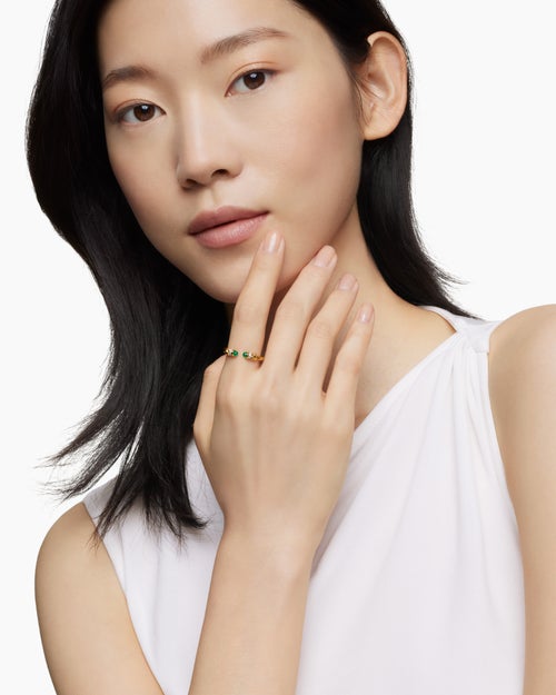 Petite Helena Ring 18K Yellow Gold with Emeralds and Diamonds, 2.5mm