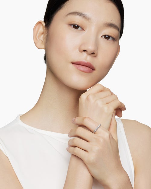 Petite Pavé Stack Ring Sterling Silver with Diamonds, 3mm
