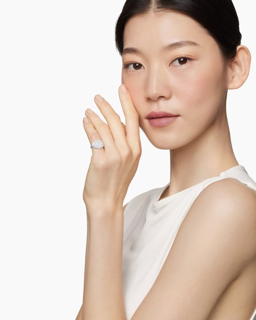 Sculpted Cable Pinky Ring 18K White Gold with Diamonds, 13mm